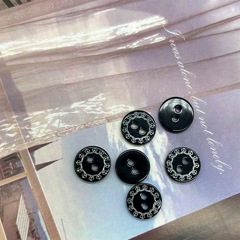 Αυτά τα κουμπιά από κοχύλι 11,5mm είναι μια κομψή επιλογή για ρούχα ανδρών και γυναικών. Το μαύρο χρώμα και τα vintage ανάγλυφα τοτέμ τους δίνουν μια μοναδική, ρετρό γοητεία. Ιδανικά για πουκάμισα και ζακέτες, προσθέτουν μια νότα κομψότητας. Ο σχεδιασμός με δύο τρύπες τα καθιστά εύκολα στο ράψιμο. Το υλικό από κοχύλι είναι ανθεκτικό και έχει φυσική λάμψη. Αυτά τα κουμπιά μπορούν να μεταμορφώσουν ένα απλό ένδυμα σε μια δήλωση μόδας, κατάλληλη για καθημερινές ή ημι-επίσημες περιστάσεις. Φέρνουν μια πινελιά κλασικής κομψότητας και μια νότα μυστηρίου, καθιστώντας τα απαραίτητα για όσους προσέχουν τη μόδα.