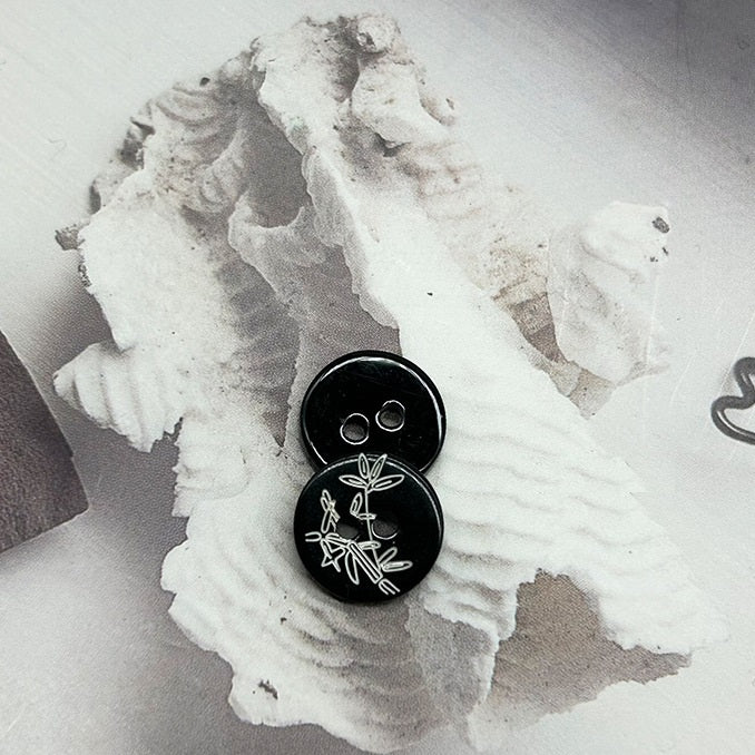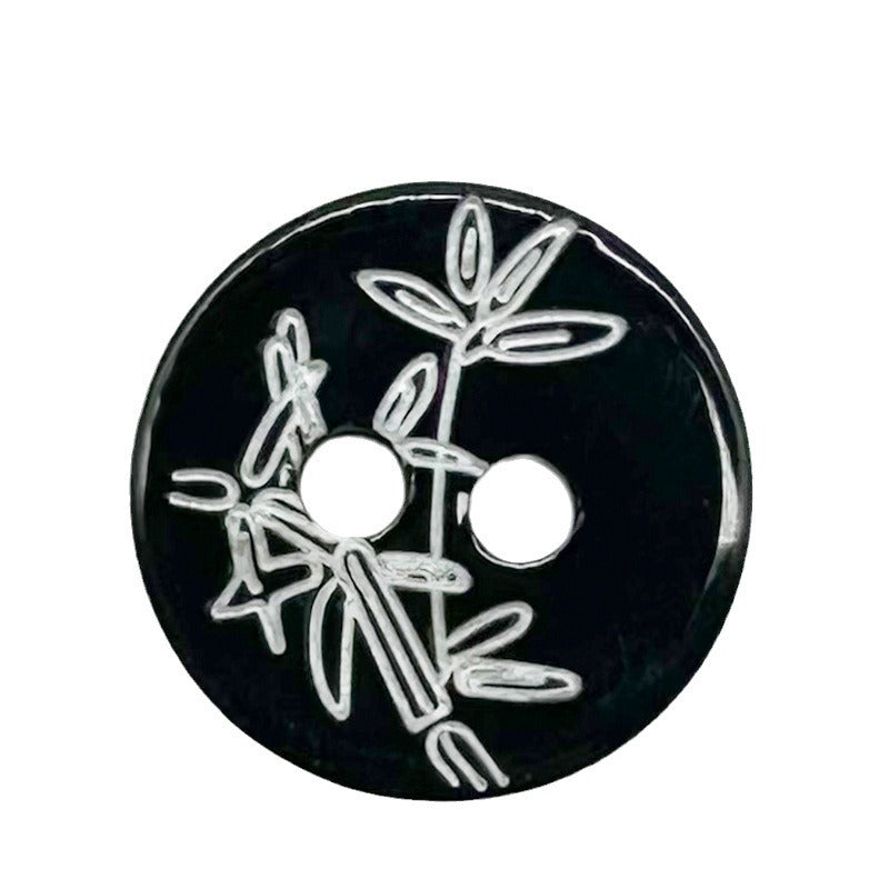 Αυτά τα κουμπιά από κοχύλι 11,5mm είναι ένας τέλειος συνδυασμός κομψότητας και ρετρό γοητείας. Ο στρογγυλός σχεδιασμός με 2 τρύπες εξασφαλίζει εύκολο ράψιμο σε πουκάμισα και ζακέτες. Το μαύρο χρώμα με σχέδιο μπαμπού προσδίδει μια μοναδική και προσωπική πινελιά. Ιδανικά για άνδρες και γυναίκες, προσθέτουν μια νότα εκλεπτυσμένης εμφάνισης σε κάθε ντύσιμο. Το υλικό από κοχύλι έχει μια φυσική λάμψη που αναδεικνύει τη συνολική εμφάνιση. Είτε πρόκειται για μια καθημερινή βόλτα είτε για μια ημι-επίσημη περίσταση, αυτά τα κουμπιά κάνουν τη διαφορά, επιτρέποντάς σας να ξεχωρίσετε με μια πινελιά vintage εμπνευσμένου στυλ και μια νότα της ομορφιάς της φύσης.