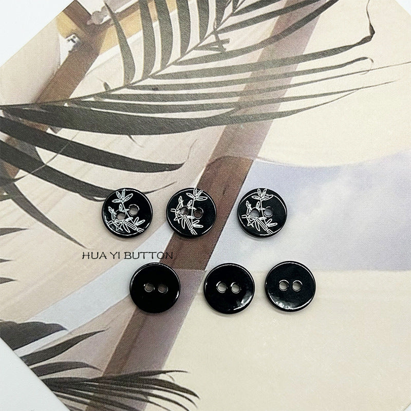 11.5mm Στρογγυλά Μαύρα Κουμπιά Πουκάμισου με 2 Τρύπες και Σχέδιο Μπαμπού 40 τεμ.