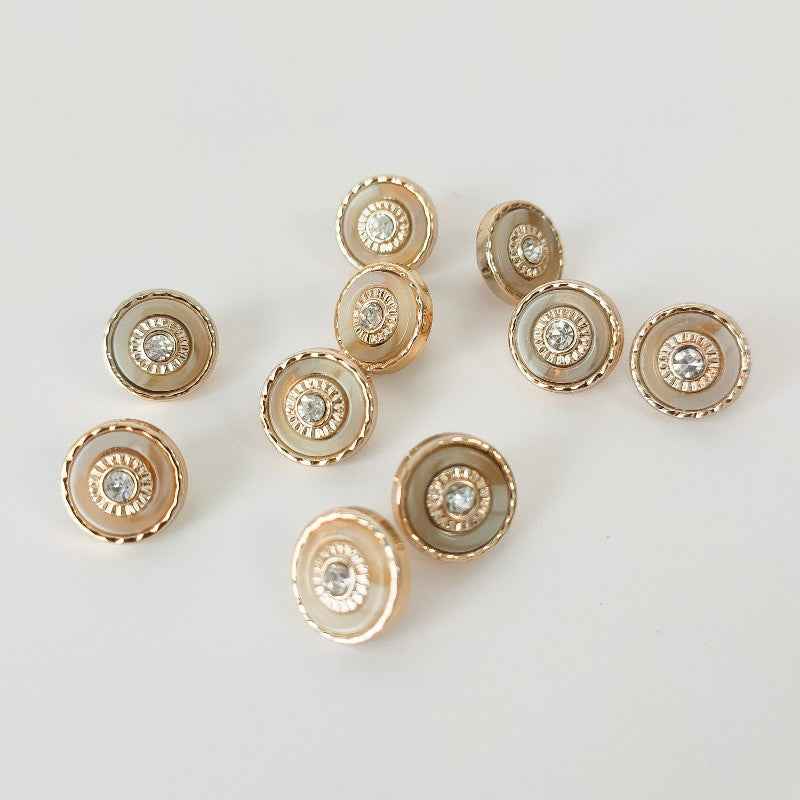 Κουμπιά με χρυσό πλαστικό στέλεχος 11mm με διαμάντια για γυναικεία πουκάμισα 50 τεμ
