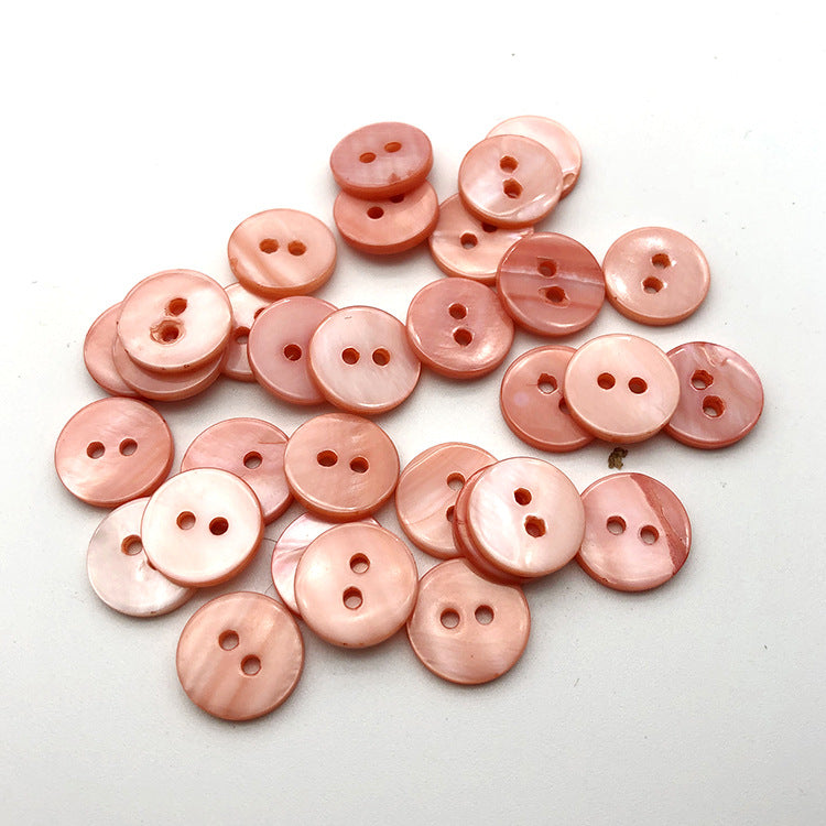 Κάθε κουμπί διαθέτει μια λεία, γυαλισμένη επιφάνεια και κλασικό επίπεδο σχήμα με δύο τρύπες για εύκολο ράψιμο. Οι φυσικές παραλλαγές στο χρώμα και την υφή κάνουν κάθε κουμπί μοναδικό, προσθέτοντας μια εξατομικευμένη πινελιά στις δημιουργίες σας.