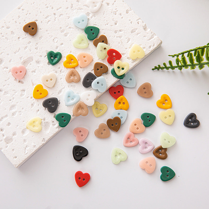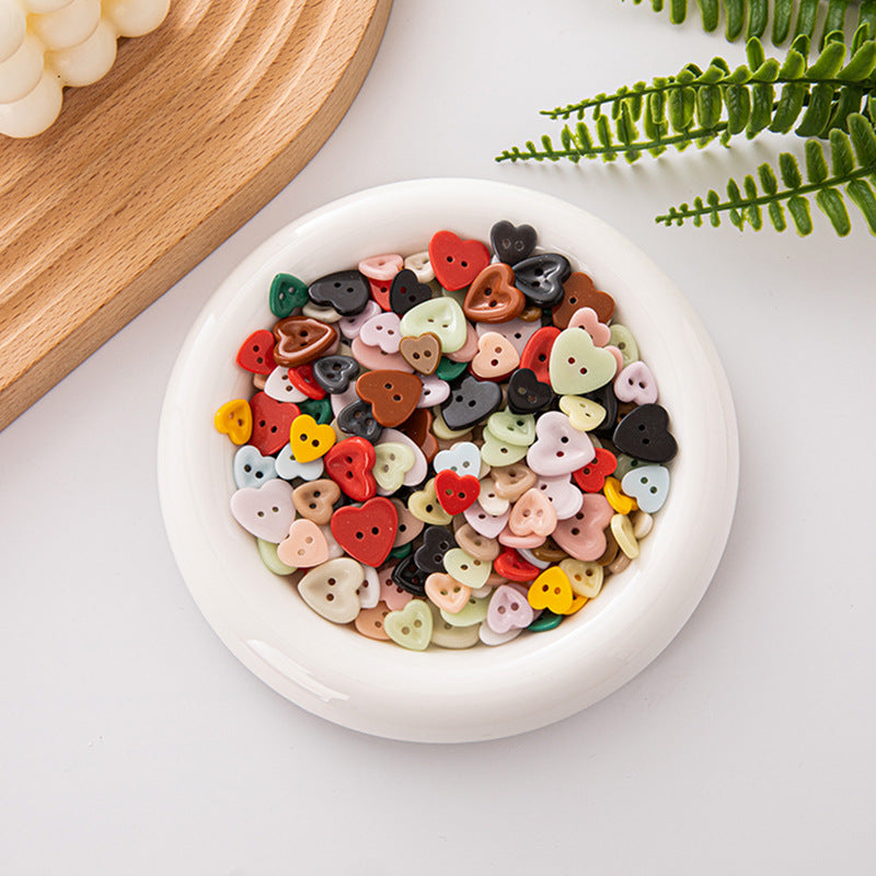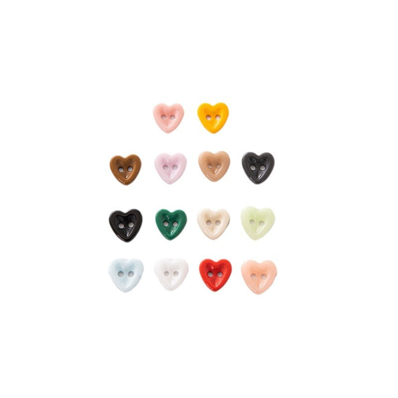 Παιδικά Πολύχρωμα Κεραμικά Κουμπιά 12mm με Σχέδιο Καρδιάς και Δύο Τρύπες για Ρούχα, 70 Τεμάχια