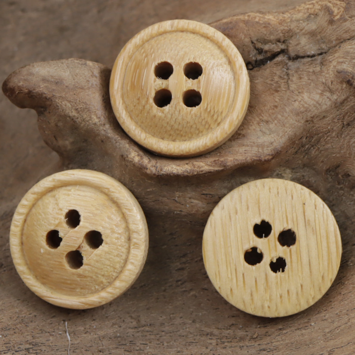 Το στρογγυλό σχήμα και οι τέσσερις τρύπες τα καθιστούν εύκολα στη στερέωση και εξασφαλίζουν σταθερό κράτημα στις πλεκτές κούκλες σας. Η φυσική υφή και το χρώμα του μπαμπού προσθέτουν μια ρουστίκ γοητεία που είναι ταυτόχρονα γοητευτική και φιλική προς το περιβάλλον.