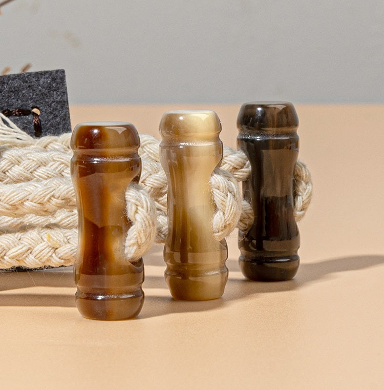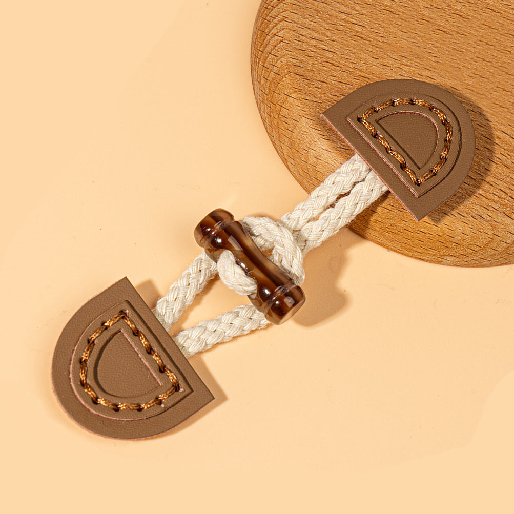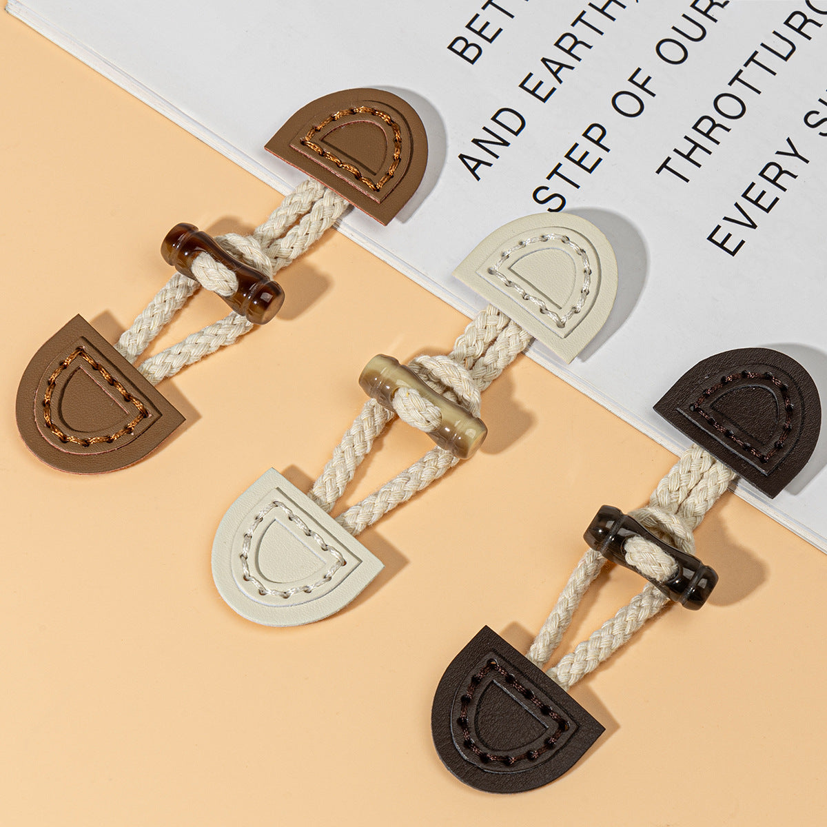Αυτά τα 14,5εκ κουμπώματα ραφής είναι μια μοναδική και κομψή επιλογή για τα ρούχα σας. Τα κουμπώματα είναι κατασκευασμένα με συνδυασμό υψηλής ποιότητας δέρματος σε μπεζ, καφέ και σκούρα καφέ αποχρώσεις, προσθέτοντας μια πινελιά φυσικής κομψότητας και ζεστασιάς. Η προσθήκη της λεπτομέρειας από ρητινώδες κέρατο βουβάλου τους δίνει μια ρουστίκ και εκλεπτυσμένη εμφάνιση. Το δέρμα είναι ραμμένο προσεκτικά για να εξασφαλίζει ανθεκτικότητα και σταθερό κράτημα, καθιστώντας τα κατάλληλα για παλτά, μπουφάν ή ακόμα και τσάντες. Δεν είναι μόνο λειτουργικά ως κλεισίματα αλλά λειτουργούν και ως διακοσμητικά στοιχεία, ενισχύοντας την συνολική αισθητική του αντικειμένου. Οι διαφορετικές αποχρώσεις χρωμάτων συνδυάζονται αρμονικά, επιτρέποντας εύκολο ταίριασμα με διάφορα στυλ υφασμάτων. Είτε επιδιώκετε ένα casual είτε πιο επίσημο look, αυτά τα κουμπώματα σίγουρα θα κάνουν εντύπωση και θα προσθέσουν μια ξεχωριστή γοητεία στα ρούχα σας.