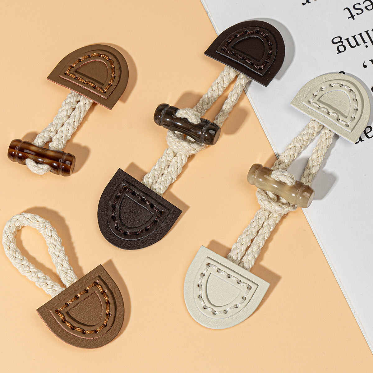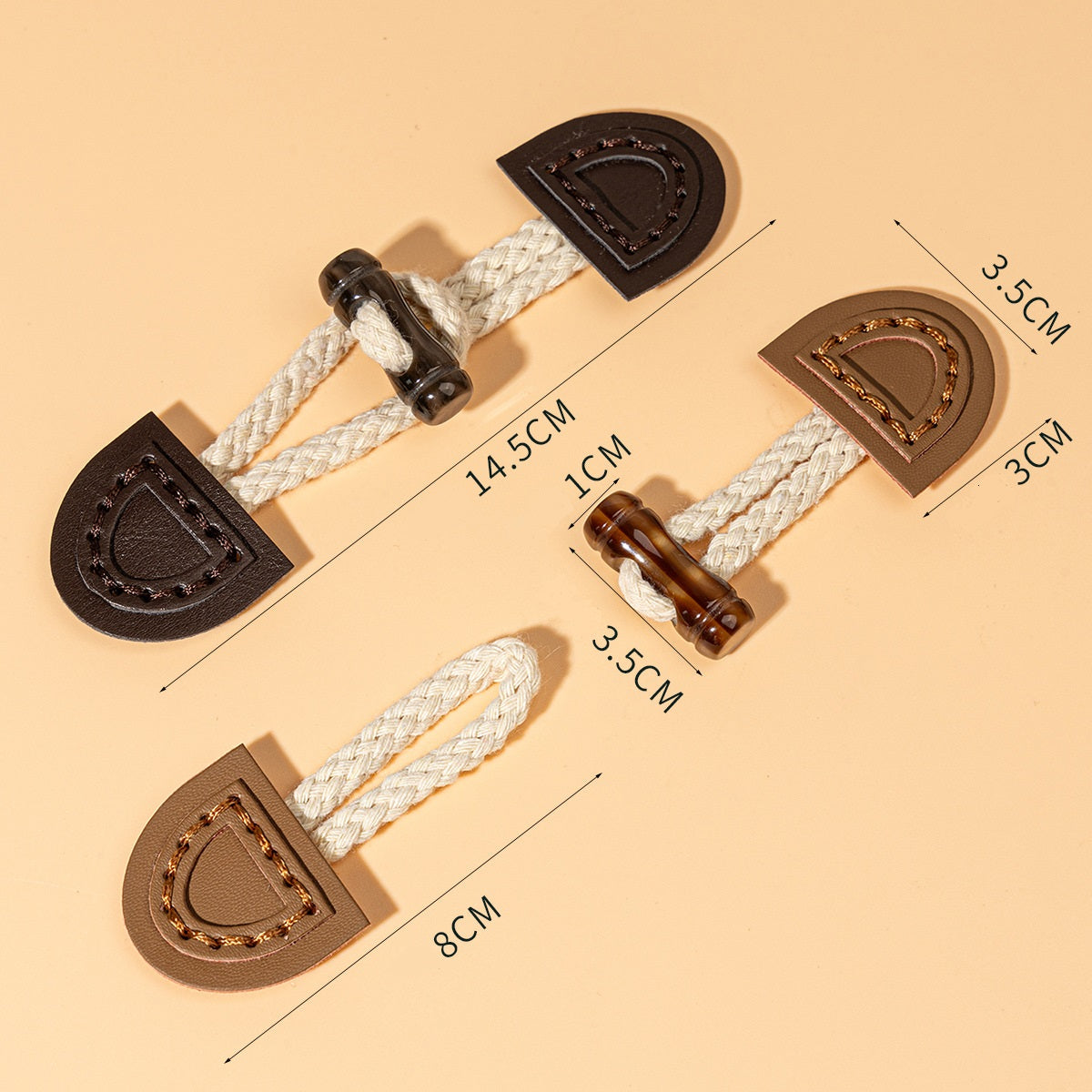 14.5cm Μπεζ, Καφέ και Σκούρο Καφέ Δερμάτινα Ραμμένα Κουμπώματα 8τεμ