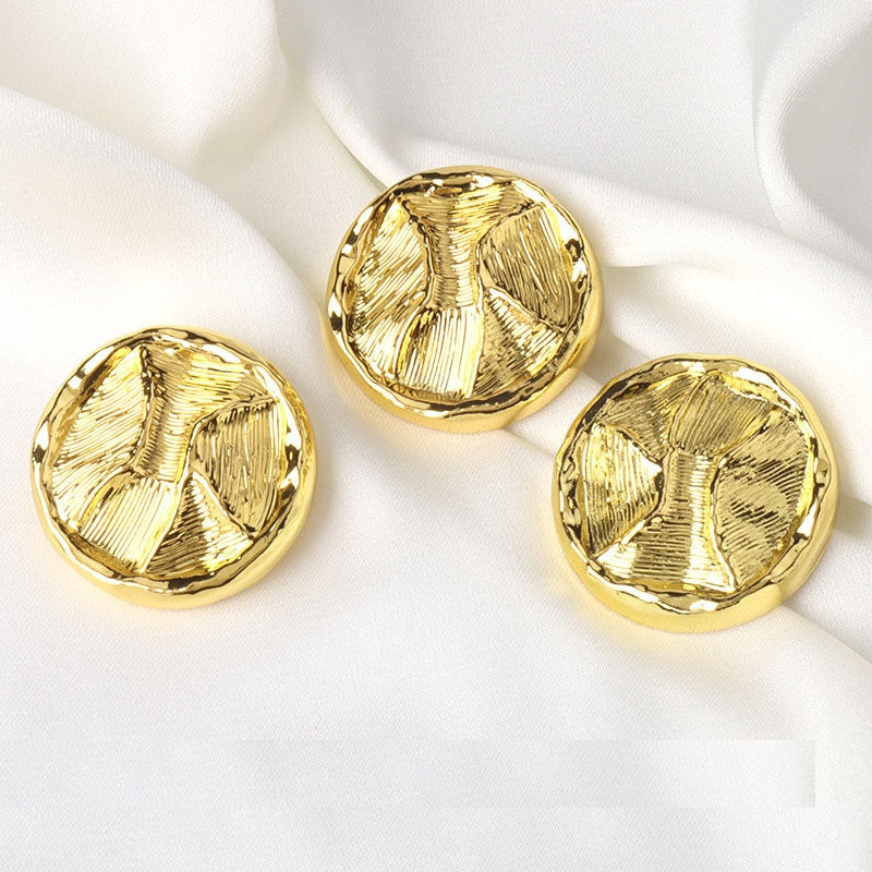 Αυτά τα μεταλλικά κουμπιά 15/20/25mm αποτελούν μια πολυτελή προσθήκη σε κάθε παλτό. Η χρυσή απόχρωση αποπνέει αίσθηση πλούτου και μεγαλοπρέπειας. Ο μοναδικός γαλλικός σχεδιασμός ripple τα ξεχωρίζει από τα συνηθισμένα κουμπιά, προσθέτοντας μια πινελιά τέχνης και εκλέπτυνσης.