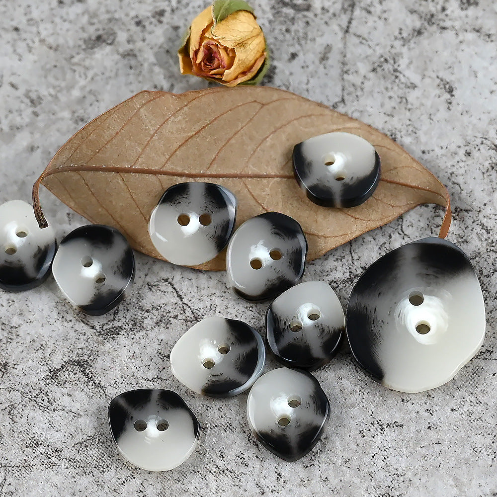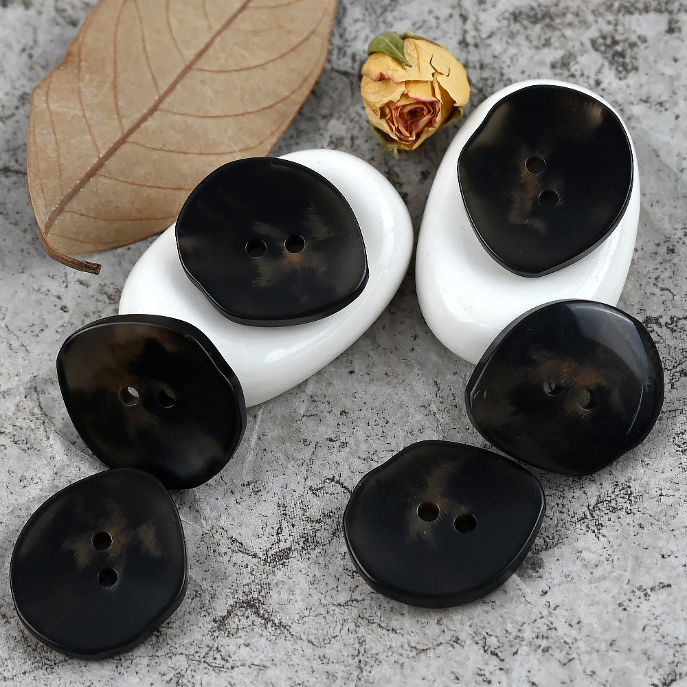 Το υλικό ρητίνης εξασφαλίζει ανθεκτικότητα και ομαλή επιφάνεια. Ο ακανόνιστος σχεδιασμός τους σπάει τη μονοτονία των παραδοσιακών κουμπιών και δημιουργεί μια τολμηρή μόδα. Είτε πρόκειται για μακρύ παλτό τύπου trench είτε για κοντό pea coat, αυτά τα κουμπιά μπορούν να αναβαθμίσουν το συνολικό στυλ. Είναι εύκολα στο ράψιμο, παρέχοντας ασφαλές κλείσιμο. Ο συνδυασμός του ακανόνιστου σχήματος και της ζεστής κεχριμπαρένιας απόχρωσης δημιουργεί μια αρμονική σύνθεση που μπορεί να αναδείξει την αισθητική οποιουδήποτε εξωτερικού ενδύματος. Αυτά τα κουμπιά δεν είναι μόνο λειτουργικά αλλά και βασικό διακοσμητικό στοιχείο, βοηθώντας σας να πετύχετε μια κομψή και μοντέρνα εμφάνιση.