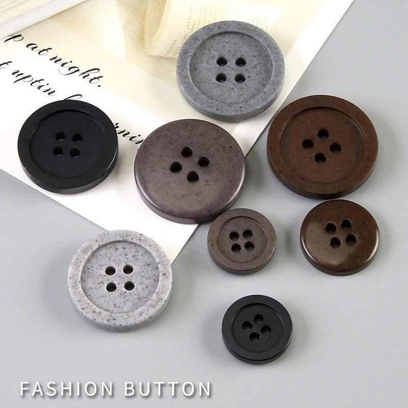 15-25mm Γκρι Καφέ Ανακυκλωμένη Ρητίνη Στρογγυλά Κουμπιά Τεσσάρων Οπών Πακέτο 30 τεμαχίων
