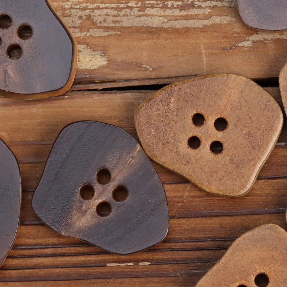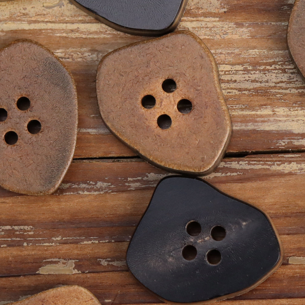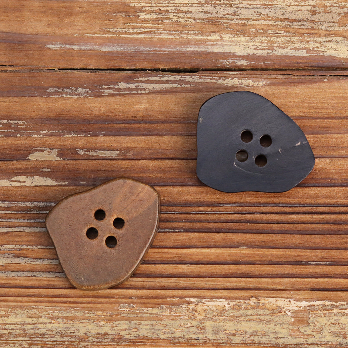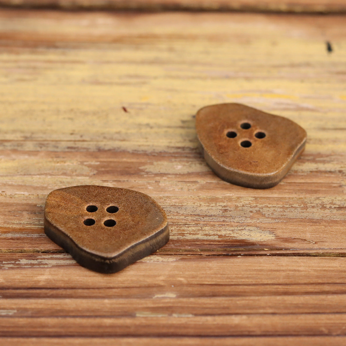 Κουμπιά από κέρατο με ακανόνιστο σχήμα 15-25mm, καμμένο μαύρο και καφέ, με τέσσερις τρύπες, 10 τεμ