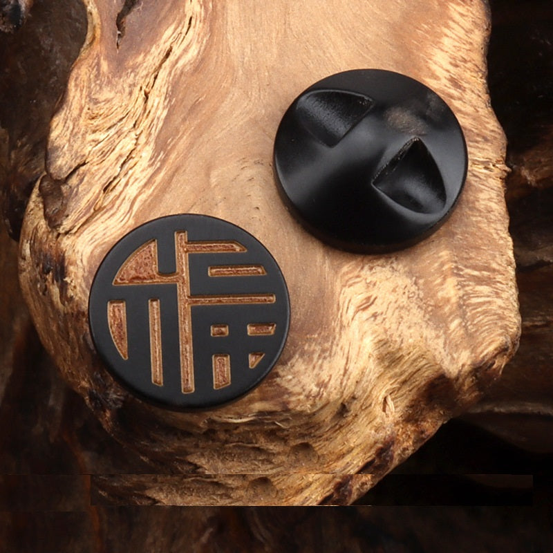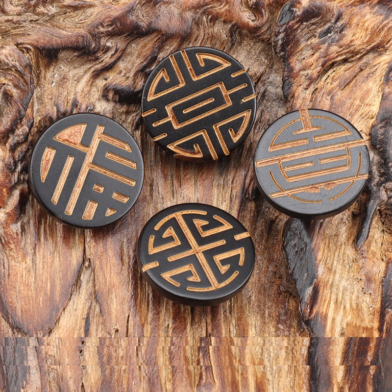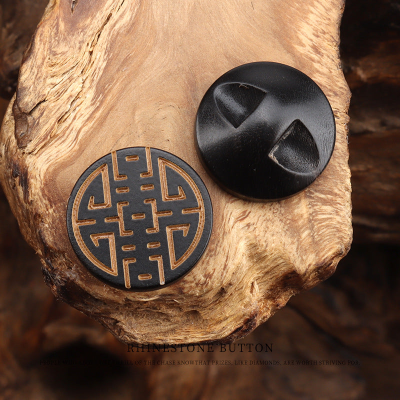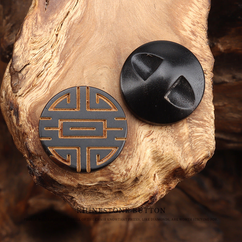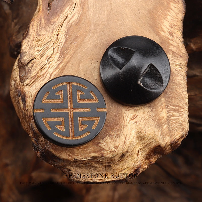 Αυτά τα στρογγυλά κουμπιά 15mm είναι κατασκευασμένα από φυσικό κέρατο σε γοητευτικό σκούρο κίτρινο χρώμα. Διαθέτουν μοναδικό σχέδιο με κρυφές τρύπες, προσθέτοντας μια νότα κομψότητας και μυστηρίου. Αυτό που τα κάνει πραγματικά ξεχωριστά είναι τα χαρακτικά με λέιζερ των κινέζικων χαρακτήρων «Fu (Τύχη)», «Lu (Ευημερία)», «Shou (Μακροζωία)», «Xi (Ευτυχία)» και «Cai (Πλούτος)», που προσδίδουν πλούσια πολιτιστική ουσία.