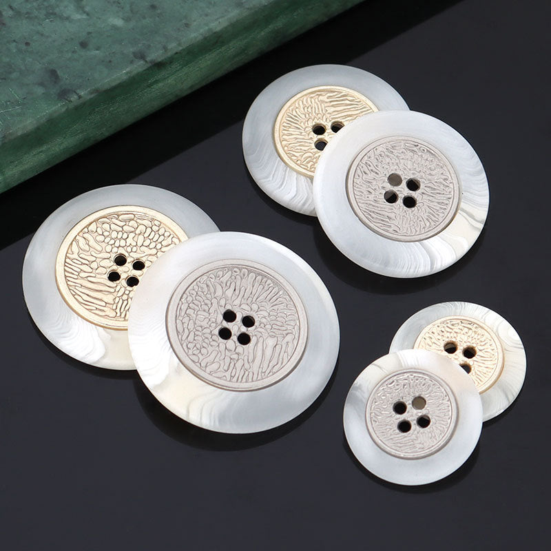 Αυτά τα κουμπιά 16/21/25mm έχουν σχεδιαστεί για να προσθέτουν μια πινελιά κομψότητας στα λευκά σας παλτά και επάνω ένδυμα. Ο μοναδικός συνδυασμός ρητίνης και μετάλλου δημιουργεί ένα δίχρωμο εφέ που είναι τόσο στυλάτο όσο και ανθεκτικό. Ο σχεδιασμός με τέσσερις τρύπες εξασφαλίζει μια ασφαλή και σταθερή προσκόλληση στο ύφασμα. Το λευκό χρώμα δίνει μια καθαρή και αγνή εμφάνιση, καθιστώντας αυτά τα κουμπιά ιδανικά για διάφορα στυλ παλτών και τοπ. Ο συνδυασμός ρητίνης-μετάλλου όχι μόνο προσφέρει μια όμορφη εμφάνιση αλλά αντέχει και στη συνηθισμένη φθορά. Είτε θέλετε να βελτιώσετε ένα επίσημο παλτό είτε ένα καθημερινό επάνω ένδυμα, αυτά τα κουμπιά είναι μια εξαιρετική επιλογή. Τα διαφορετικά μεγέθη τους εντός της γκάμας 16/21/25mm προσφέρουν ευελιξία για διαφορετικά σχέδια ρούχων, επιτρέποντάς σας να πετύχετε την τέλεια εφαρμογή και εμφάνιση.