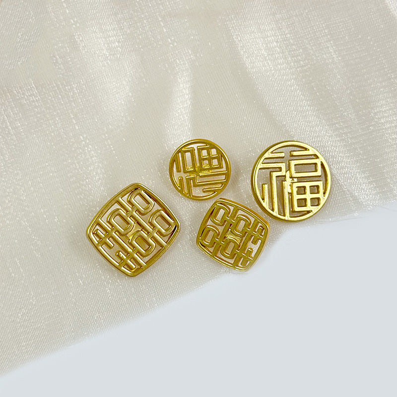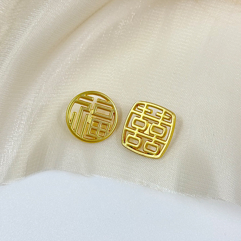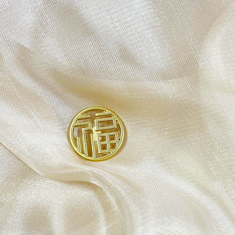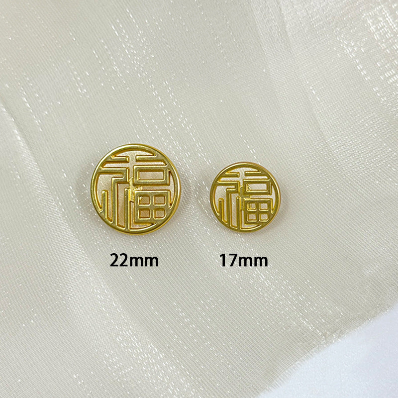 Αυτά τα μεταλλικά κουμπιά 17/22mm είναι μια όμορφη αναπαράσταση του κινεζικού στυλ. Τα στρογγυλά και τετράγωνα σχήματα, μαζί με το διάτρητο σχέδιο που απεικονίζει τους χαρακτήρες "Fu" και "Xi", προσθέτουν μια νότα κομψότητας και πολιτισμικής σημασίας. Τα κουμπιά έχουν μύτες, καθιστώντας τα βολικά για ράψιμο. Είναι ιδανικά για να αναβαθμίσουν την εμφάνιση παραδοσιακών κινεζικών ενδυμάτων όπως τα cheongsams ή σύγχρονα ρούχα με κινεζική πινελιά. Η μεταλλική κατασκευή εξασφαλίζει ανθεκτικότητα και λαμπερό φινίρισμα. Αυτά τα κουμπιά μπορούν να μεταμορφώσουν ένα απλό ένδυμα σε έργο τέχνης, αποπνέοντας μια αίσθηση γοητείας και εορταστικότητας.