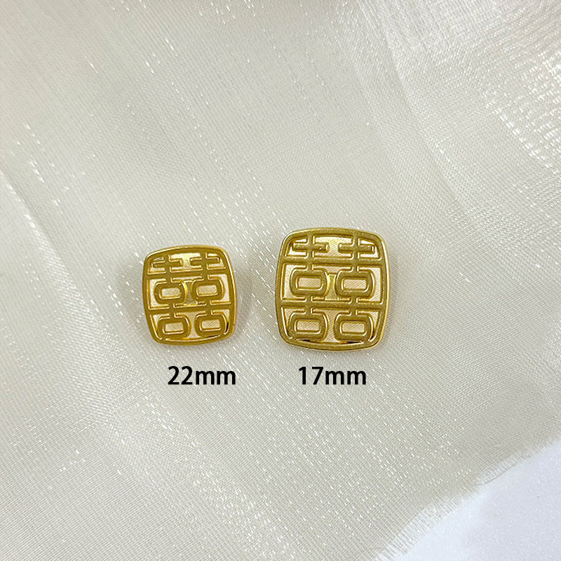 17/22mm Κινεζικού Στυλ Στρογγυλά & Τετράγωνα Διάτρητα Μεταλλικά Κουμπιά με τους Χαρακτήρες "Fu" (Ευτυχία) και "Xi" (Ευλογία) και Μύτες 50τεμ