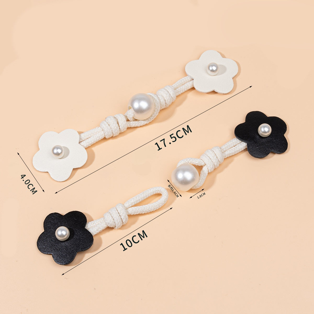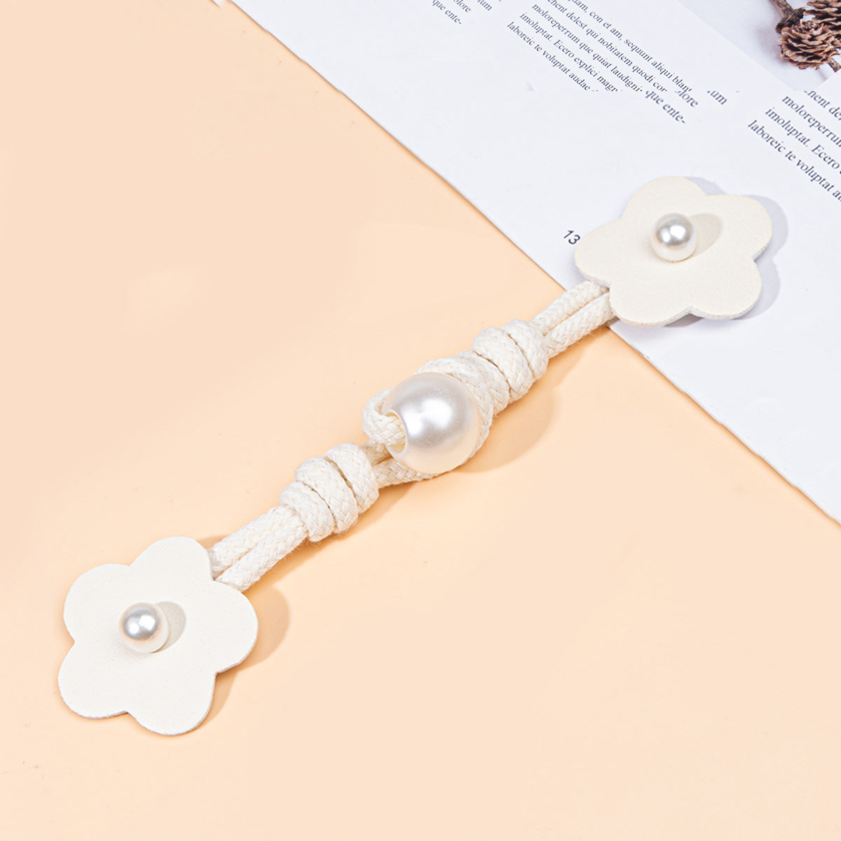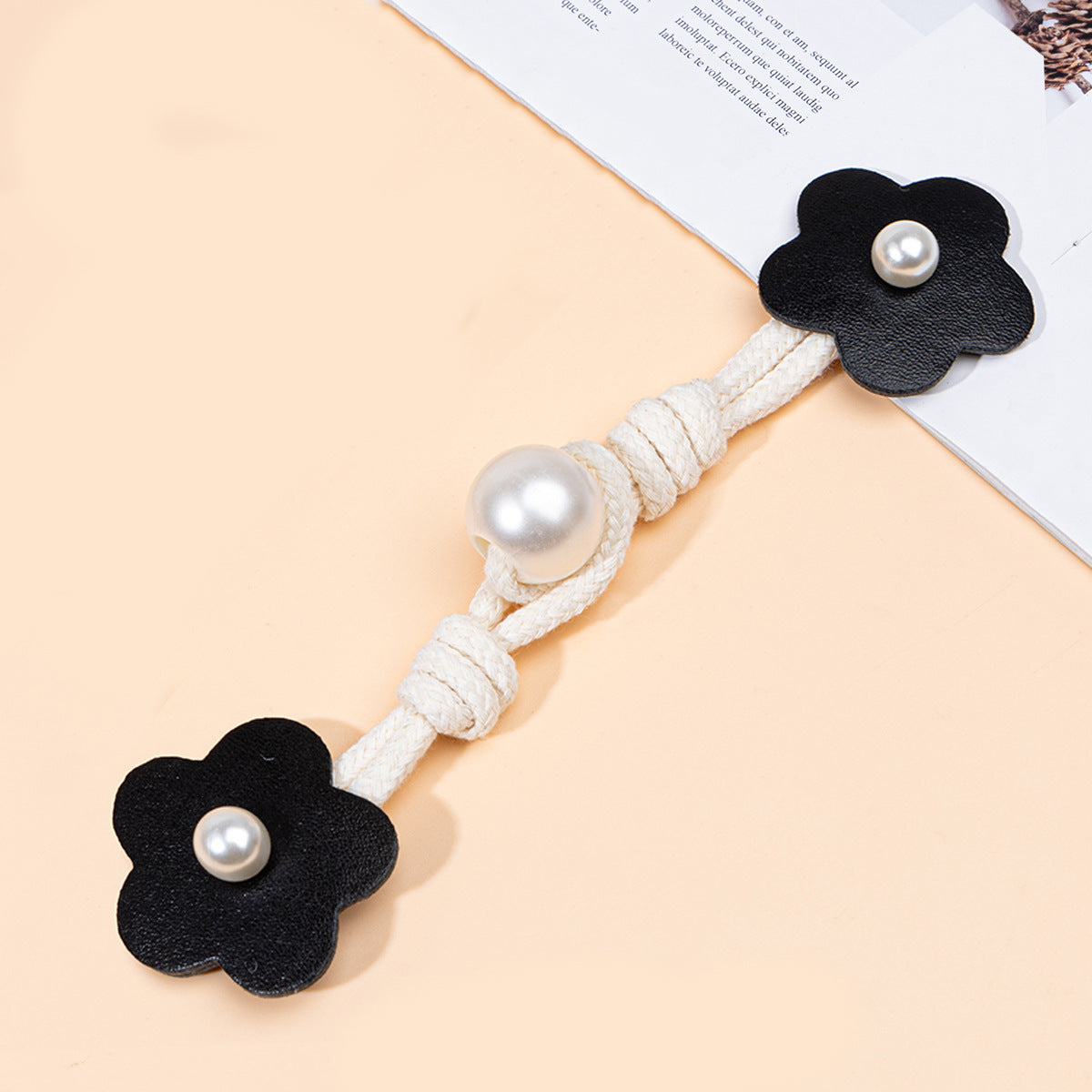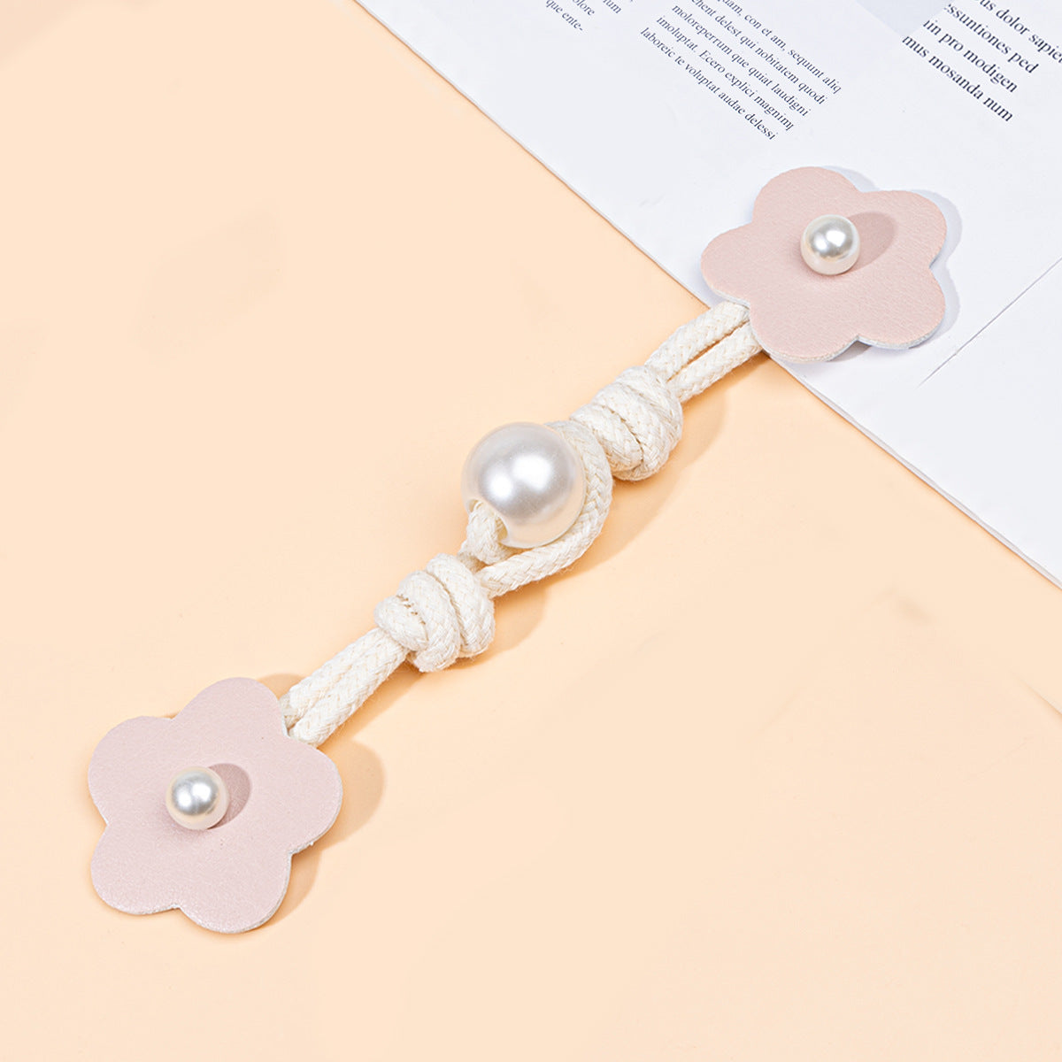 17.5cm Μπεζ Μαύρο Ροζ Δερμάτινα Ραμμένα Κουμπώματα με Πέρλα Αγκράφα 6 τεμ