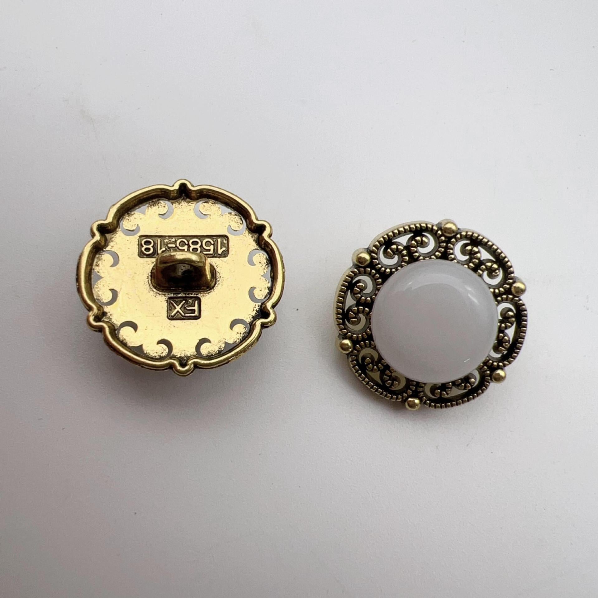 Βελτιώστε τα έργα DIY σας με τα κουμπιά μας 15/17,5mm Κινέζικου Στυλ Vintage Στρογγυλά Δαντελωτά Μεταλλικά Κουμπιά με Στέλεχος. Αυτά τα κουμπιά διαθέτουν γοητευτικό στρογγυλό δαντελωτό σχέδιο, κατασκευασμένα από υψηλής ποιότητας μέταλλο με vintage φινίρισμα, προσθέτοντας μια πινελιά κομψότητας και φινέτσας σε οποιοδήποτε ένδυμα. Ο σχεδιασμός με στέλεχος στο πίσω μέρος εξασφαλίζει εύκολη και ασφαλή προσάρτηση στα ρούχα ή τις χειροτεχνίες σας. Ιδανικά για ποικίλες εφαρμογές, όπως ρούχα, αξεσουάρ και διακόσμηση σπιτιού, αυτά τα κουμπιά είναι η ιδανική επιλογή για όσους εκτιμούν την παραδοσιακή τεχνική και τα μοναδικά αξεσουάρ μόδας.