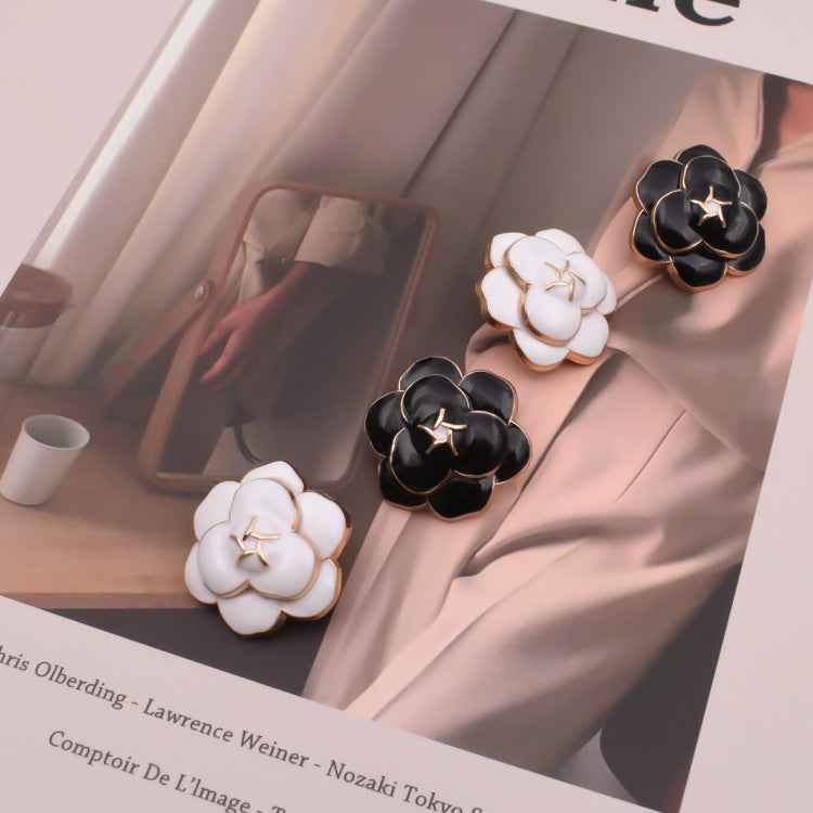 Είτε ντύνεστε για μια επίσημη περίσταση είτε προσθέτετε μια πινελιά κομψότητας στην καθημερινή σας εμφάνιση, αυτά τα κουμπιά σίγουρα θα εντυπωσιάσουν. Ο σχεδιασμός καμέλια προσθέτει μια δόση λουλουδένιας γοητείας, ενώ το ασπρόμαυρο χρωματικό συνδυασμό προσφέρει ευελιξία και στυλ. Επενδύστε σε αυτά τα όμορφα κουμπιά σήμερα και ανεβάστε τη μόδα σας σε άλλο επίπεδο!