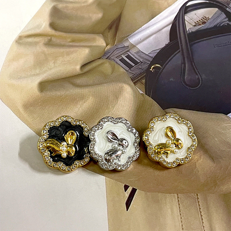 18/23mm Εκλεπτυσμένα μεταλλικά κουμπιά με πέρλες και διαμάντια, διακοσμημένα με κουνελάκι, για κοστούμια και παλτά 50 τεμ
