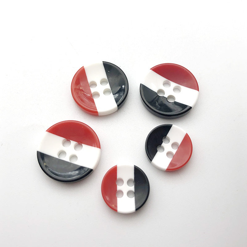 18mm Κόκκινα, Λευκά και Μαύρα Ριγέ Κουμπιά Πουκάμισου από Ρητίνη με Τέσσερις Τρύπες 100 τεμ.