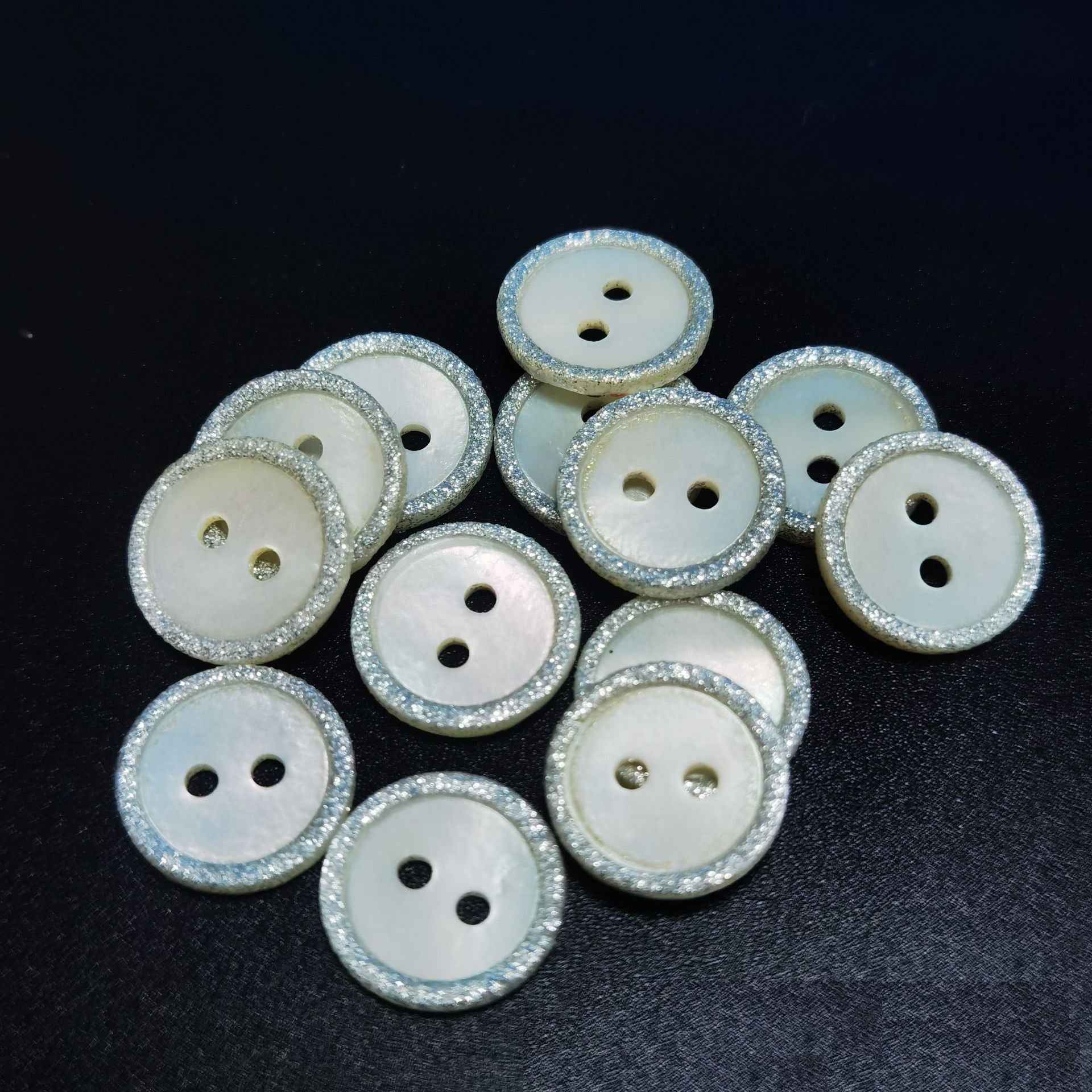 20L (12,5mm) Στρογγυλά Κουμπιά Μητέρας του Μαργαριταριού με 2 Τρύπες και Ασημένια Σκόνη στην Άκρη – Κουμπιά Premium Κελύφους για Πολυτελή Πουκάμισα 100τεμ