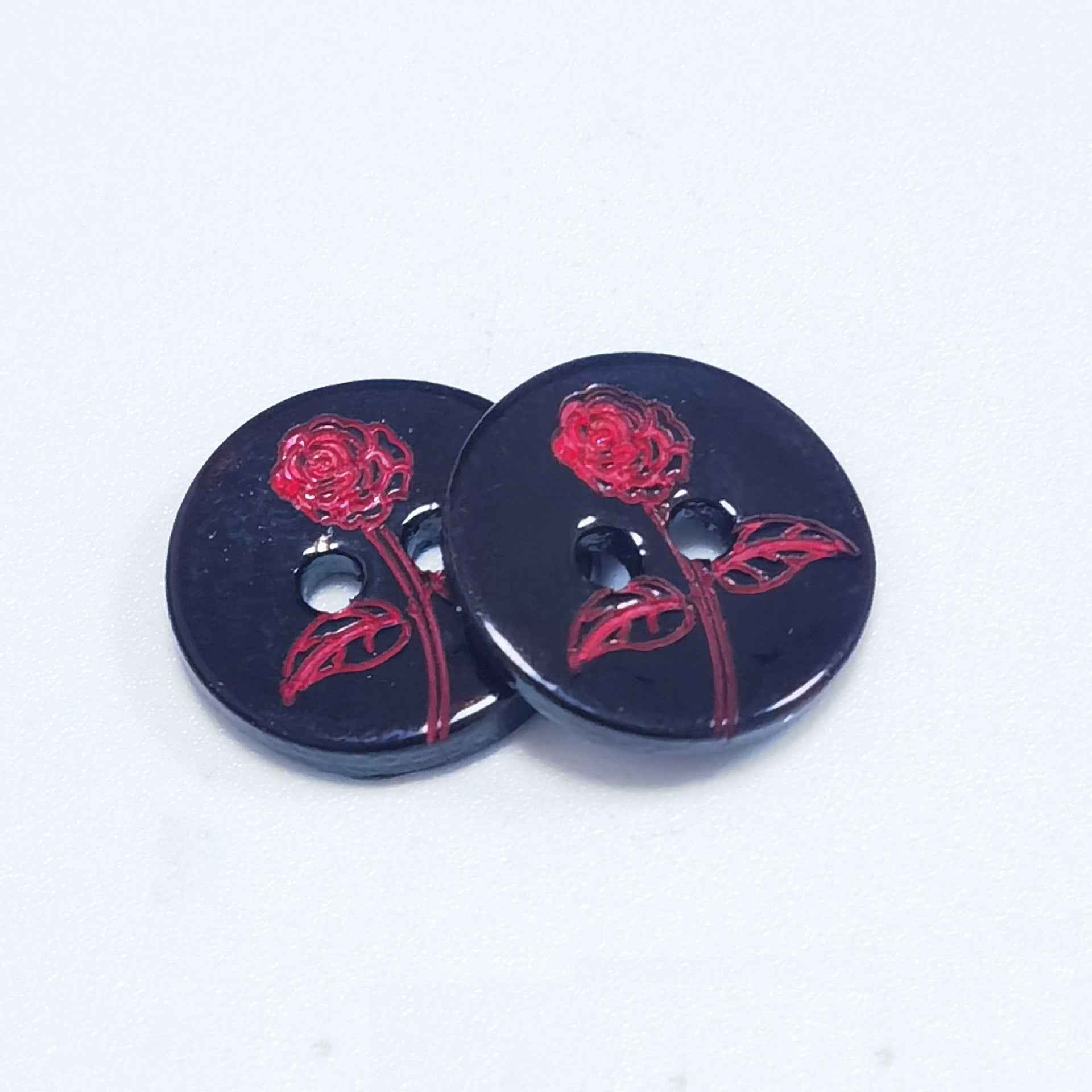 20L (12.5mm) Κινέζικου Στυλ Μαύρα & Κόκκινα Κουμπιά από Φίλντισι με Λουλουδένιο Σχέδιο – Ποιοτικά Κουμπιά με 2 Τρύπες από Κέλυφος για Παραδοσιακή Μόδα 100 τεμ
