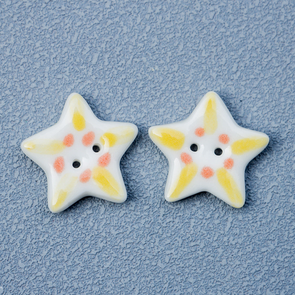 Αυτά τα κεραμικά κουμπιά 20mm, κατασκευασμένα σε γοητευτικό πεντάκτινο σχήμα αστεριού με δύο τρύπες, είναι μια ιδανική επιλογή για χειροποίητα DIY κοσμήματα.