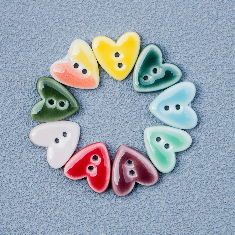 Αυτά τα κεραμικά κουμπιά 20mm, σχεδιασμένα σε ένα χαριτωμένο μικρό σχήμα καρδιάς με δύο τρύπες, είναι μια τέλεια προσθήκη σε χειροποίητα DIY κοσμήματα.