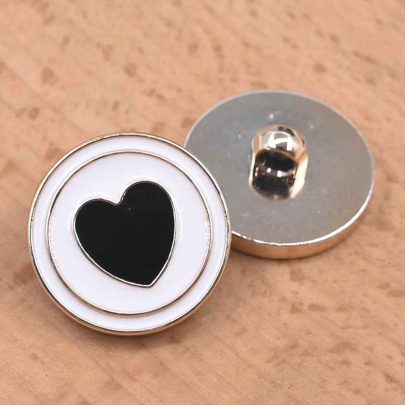 Κουμπιά με Πλαστικό Στέλεχος 21/23mm - Μαύρα/Λευκά Κουμπιά Καρδιά & Κουκκίδα για Πιτζάμες, Ζακέτες & Παλτό (60 τεμ Πολυ-στυλ Σετ)