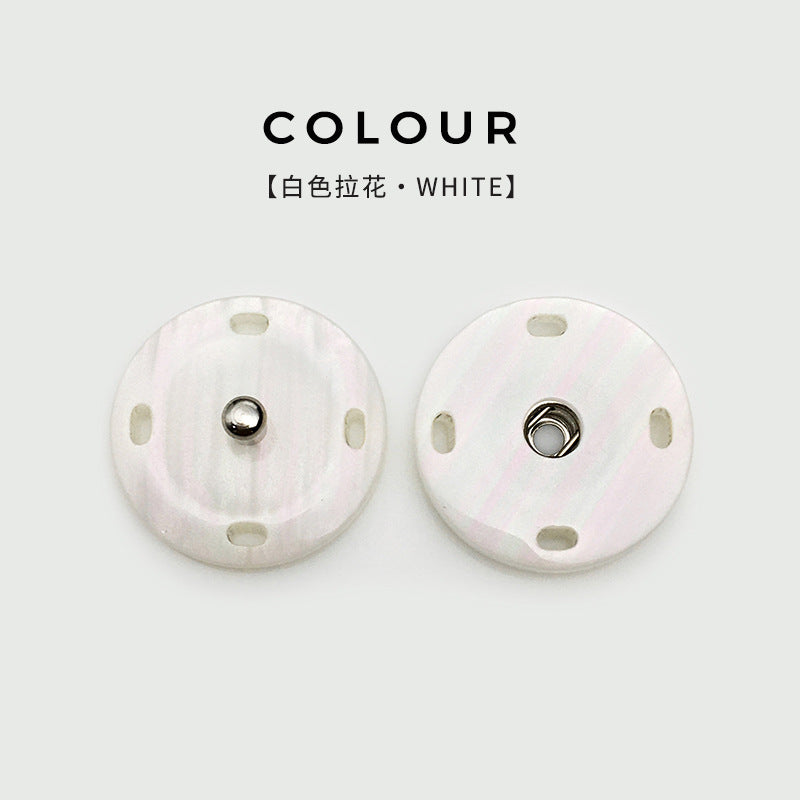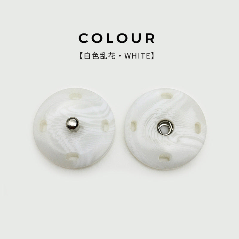 Αυτά τα κουμπώματα ρητίνης έχουν σχεδιαστεί για να προσφέρουν μια βολική και κομψή λύση για το κούμπωμα παλτών. Διατίθενται σε μεγέθη 21mm και 25mm, είναι ιδανικά για διάφορα στυλ παλτών. Το πιο ξεχωριστό χαρακτηριστικό τους είναι ο αόρατος σχεδιασμός τους, που προσφέρει μια αδιάκοπη εμφάνιση στο ένδυμα, ενισχύοντας τη συνολική αισθητική του. Δεν απαιτούν τρύπημα, που σημαίνει ότι δεν προκαλείται ζημιά στο ύφασμα, και είναι εύκολα στην εγκατάσταση και αφαίρεση. Κατασκευασμένα από υψηλής ποιότητας ρητίνη, είναι ανθεκτικά και αξιόπιστα, εξασφαλίζοντας μακροχρόνια χρήση. Είτε πρόκειται για ένα παχύ χειμερινό παλτό είτε για ένα ελαφρύ φθινοπωρινό μπουφάν, αυτά τα κουμπώματα θα στερεώσουν με ασφάλεια το ένδυμα διατηρώντας παράλληλα μια κομψή και επαγγελματική εμφάνιση. Αποτελούν μια πρακτική επιλογή για όσους εκτιμούν τόσο τη λειτουργικότητα όσο και την εκλεπτυσμένη εμφάνιση των ρούχων τους, καθιστώντας το ντύσιμο και το γδύσιμο μια εύκολη διαδικασία.