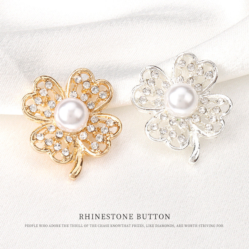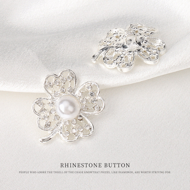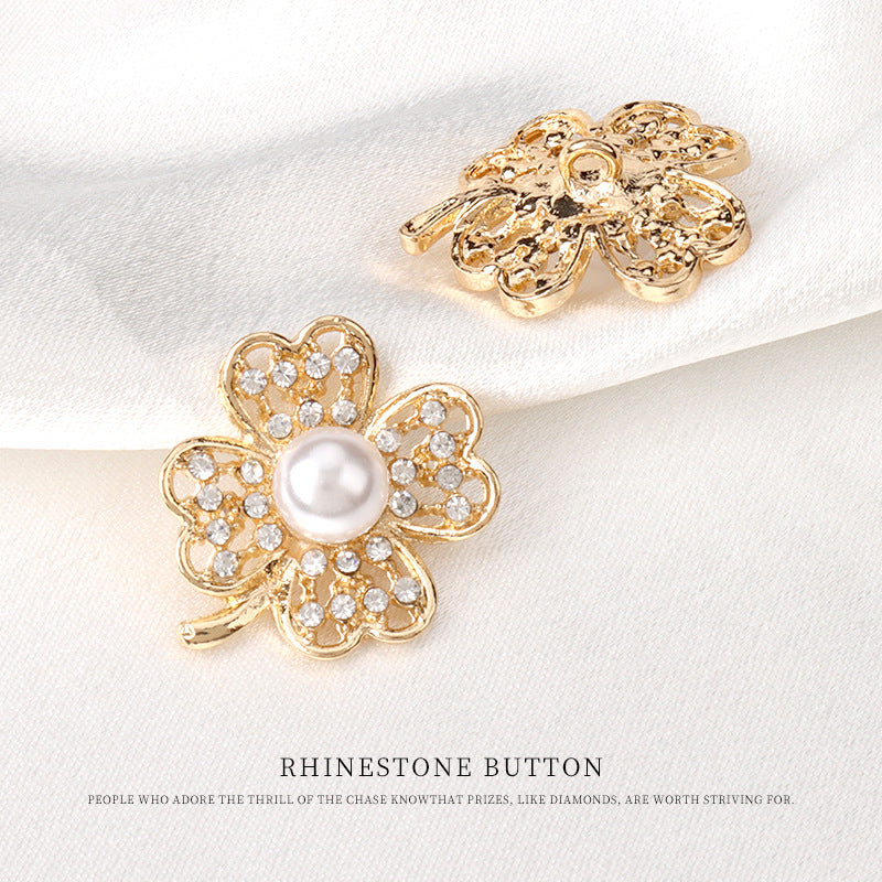 22mm Μεταλλικό Κουμπί με Πέρλα και Στρας - Διακοσμητικό Λουλουδένιο Κουμπί με Ενθετά Διαμάντια για Γυναικεία Παλτά 6 τεμ