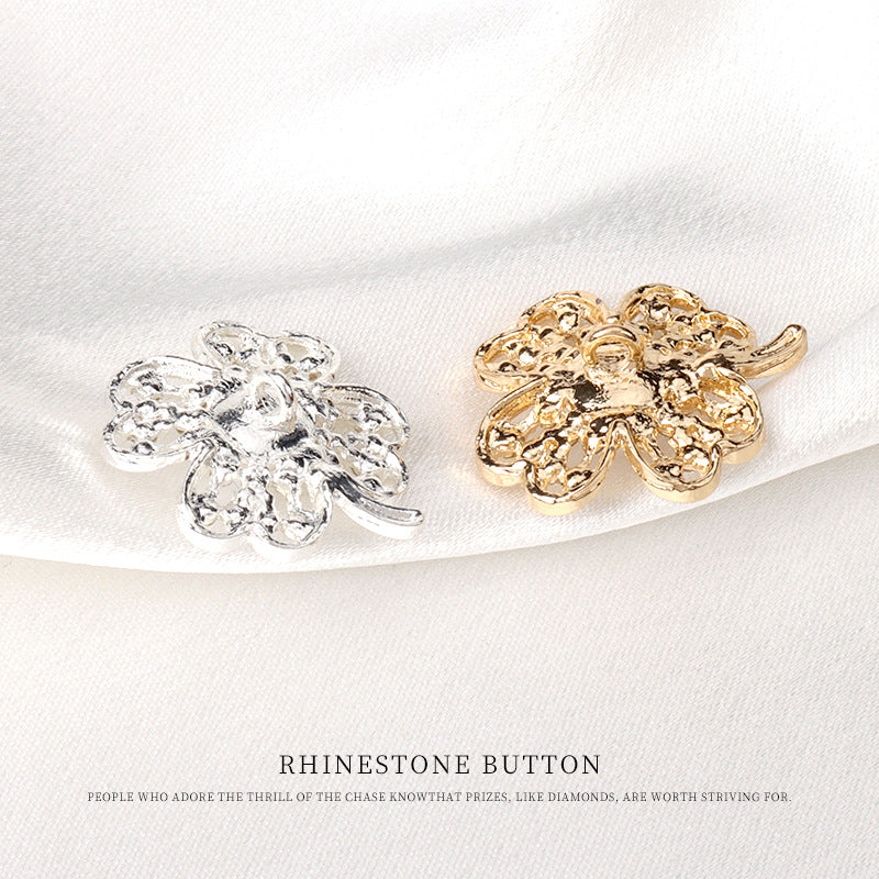 22mm Μεταλλικό Μαργαριτάρι Διακοσμητικό Κουμπί με Στρας Διαμάντι Ανθικό 6 τεμ