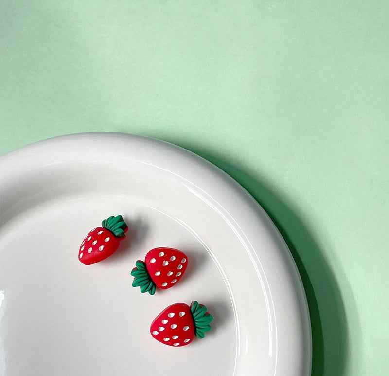 Αυτά τα πλαστικά κουμπιά 22mm έχουν σχεδιαστεί στο σχήμα ζωντανών κόκκινων φραουλών, παρουσιάζοντας μια χαριτωμένη και καρτουνίστικη εμφάνιση. Είναι εξοπλισμένα με μεταλλικά στελέχη, που ενισχύουν την ανθεκτικότητα και τη σταθερότητά τους όταν προσαρτώνται σε παιδικά ρούχα. Τα κουμπιά είναι κατασκευασμένα από υψηλής ποιότητας πλαστικό που είναι ασφαλές για παιδιά. Το φωτεινό κόκκινο χρώμα τους και το μοτίβο φράουλας προσθέτουν μια πινελιά γοητείας και παιχνιδιάρικης διάθεσης σε οποιοδήποτε παιδικό ένδυμα, είτε πρόκειται για φόρεμα, πουκάμισο ή μπουφάν. Αυτά τα κουμπιά δεν λειτουργούν μόνο ως πρακτικά κλεισίματα αλλά και ως διακοσμητικά στοιχεία, κάνοντας τα παιδικά ρούχα πιο ελκυστικά και μοναδικά, επιτρέποντας στα παιδιά να αναδείξουν την ατομικότητά τους.