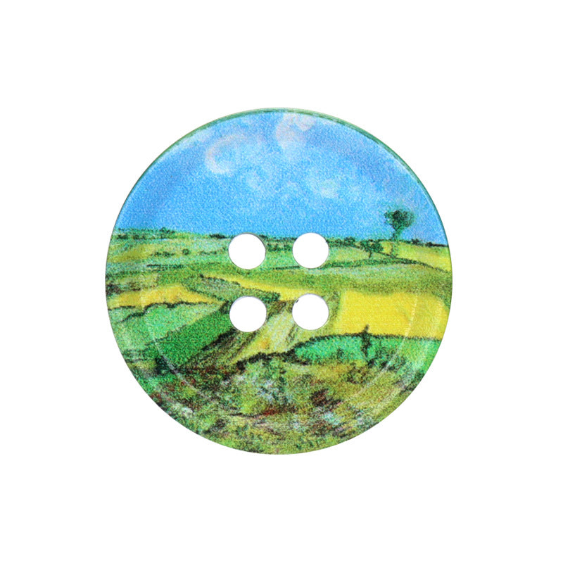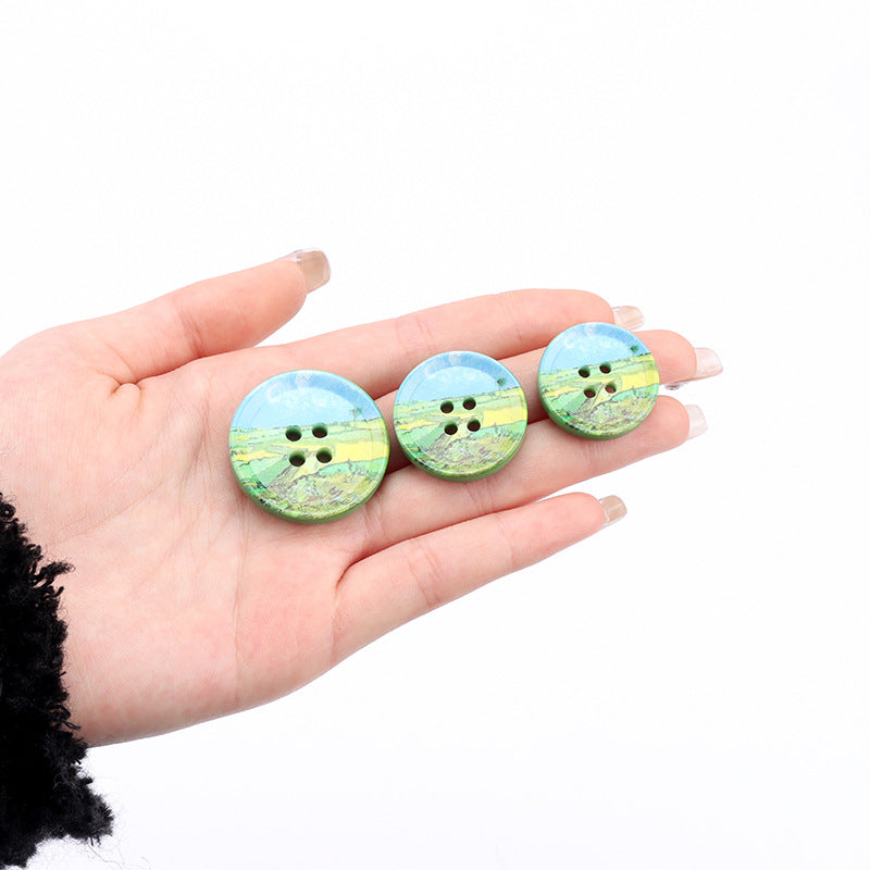 23/25/30mm Στρογγυλά κουμπιά με τέσσερις τρύπες από ρητίνη με εκτυπώσεις ελαιογραφίας 20 τεμ.
