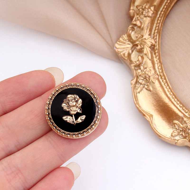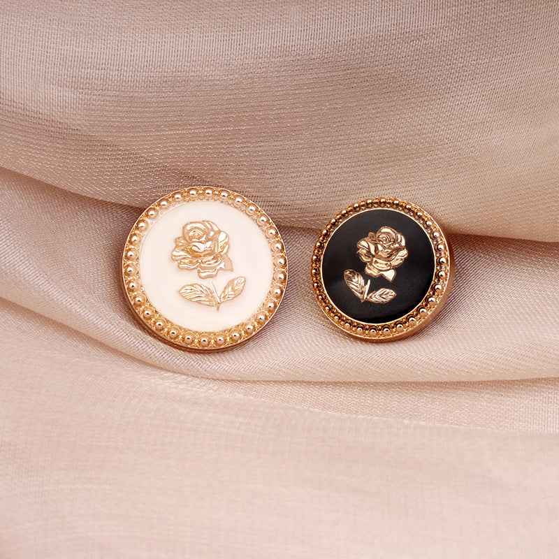 Σετ 24 κουμπιών με μοτίβο τριαντάφυλλου - στρογγυλά μεταλλικά κουμπιά ραψίματος με χρυσό περίγραμμα (Λευκό & Μαύρο), διακοσμητικά κουμπιά κράματος για ρούχα, χειροτεχνίες & έργα DIY