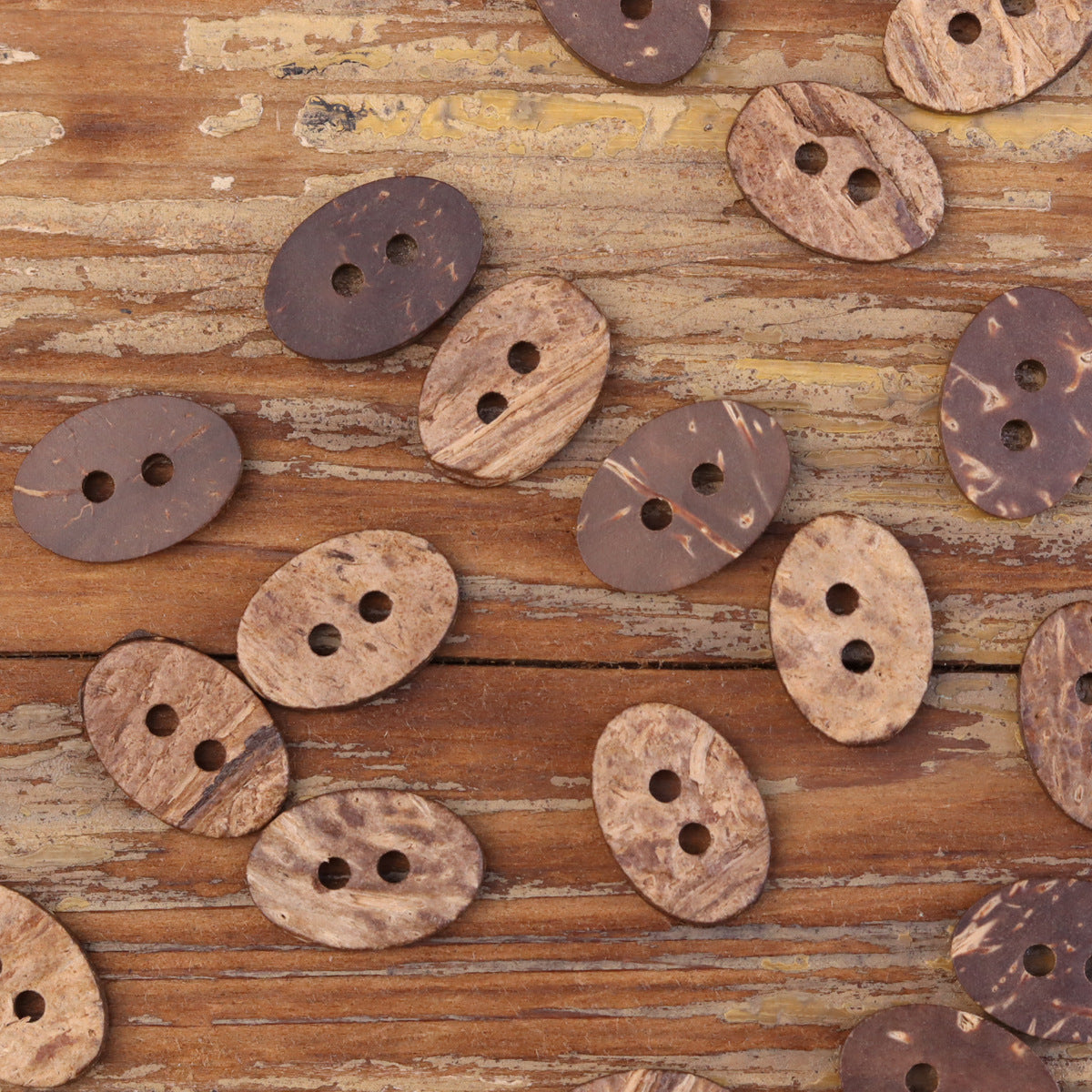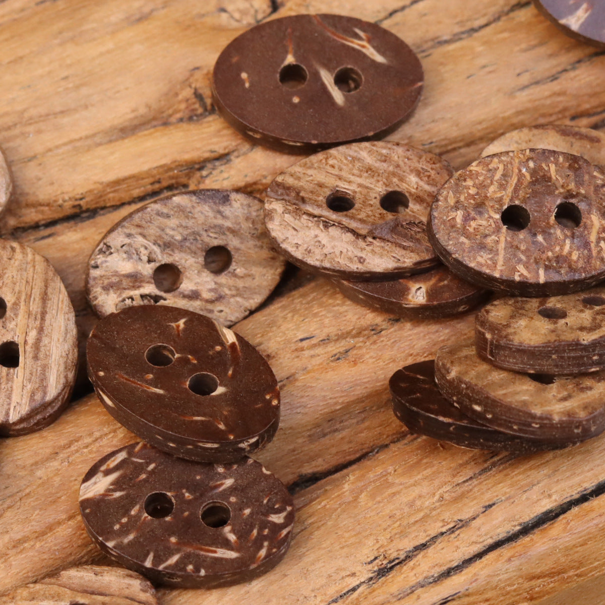 24L Οβάλ Φυσικό Κοχύλι Καρύδας Κουμπιά με Δύο Τρύπες για Παιδικά Ρούχα 20 τεμ.