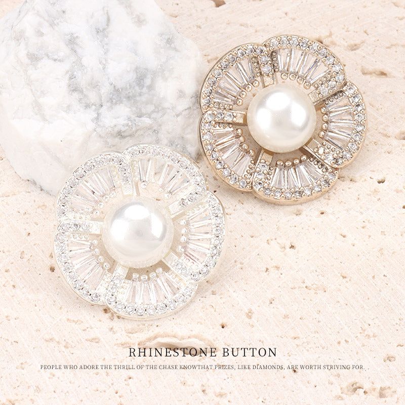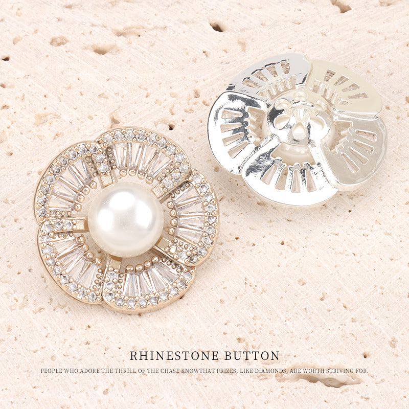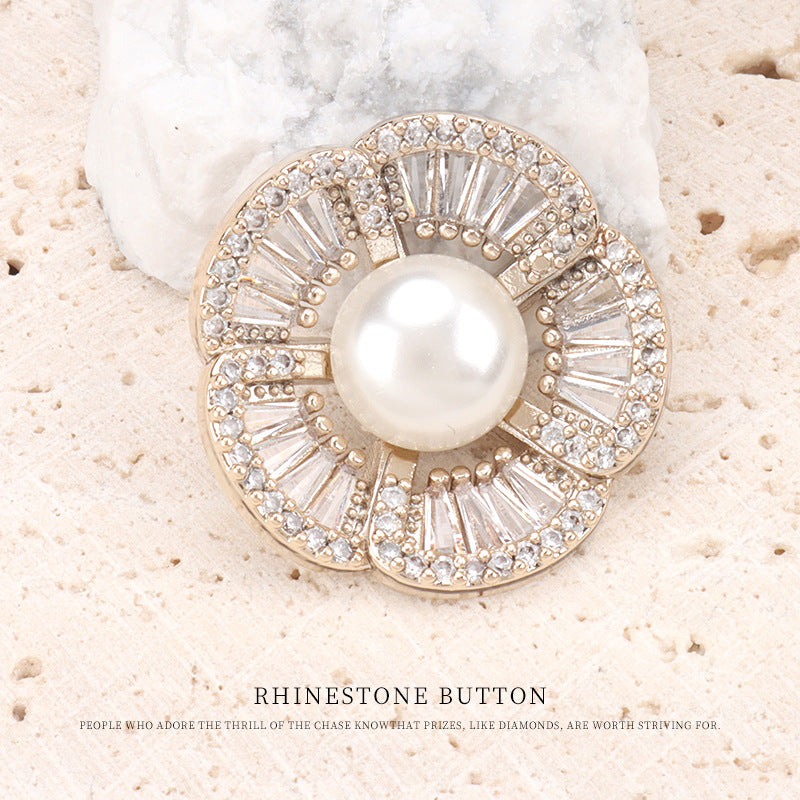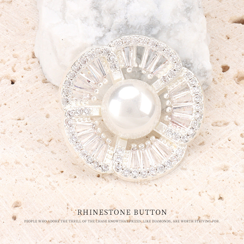 24mm Κουμπί από Χαλκό με Λουλουδένιο Ζιρκόνιο και Μαργαριτάρι - Κουμπιά για Γούνινα Παλτό, Αδιάβροχα, Μόδα Πουλόβερ και Εξωτερικά Ρούχα 2τεμ