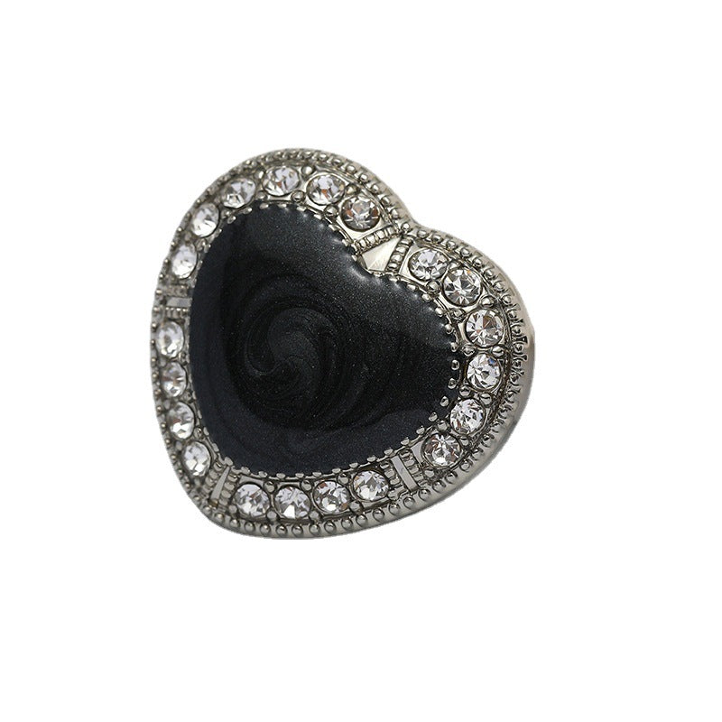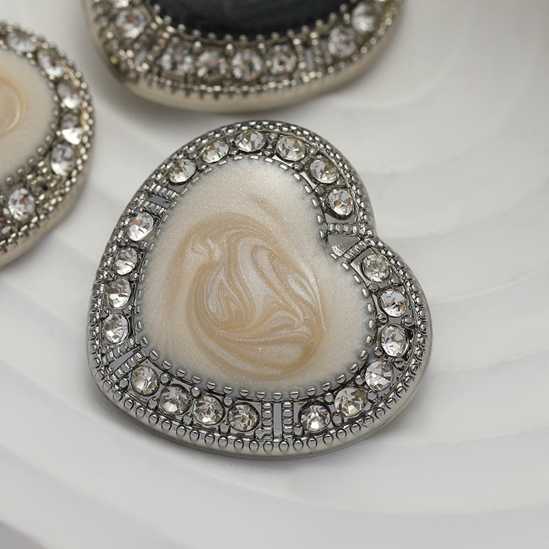 25MM Κοίλο Μεταλλικό Κουμπί σε Σχήμα Καρδιάς με Ενσωματωμένα Διαμάντια, Μαύρο και Λευκό Λαδωμένο, 10 τεμάχια