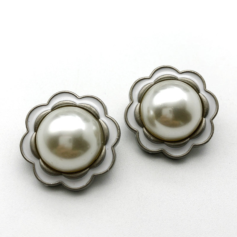 25mm Στρογγυλό Δαντελένιο Μαργαριταρένιο Κουμπί με Μεταλλικό Πόδι 12 τεμ.