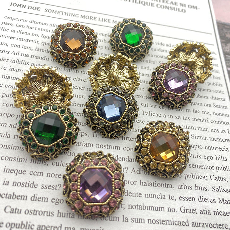 Κουμπιά βάσης από κράμα μπρούντζου 18/25mm με μονόχρωμη ημιδιαφανή επίστρωση και διακοσμητικά χάντρες, συσκευασία 50 τεμαχίων (5 ανάμεικτα χρώματα)