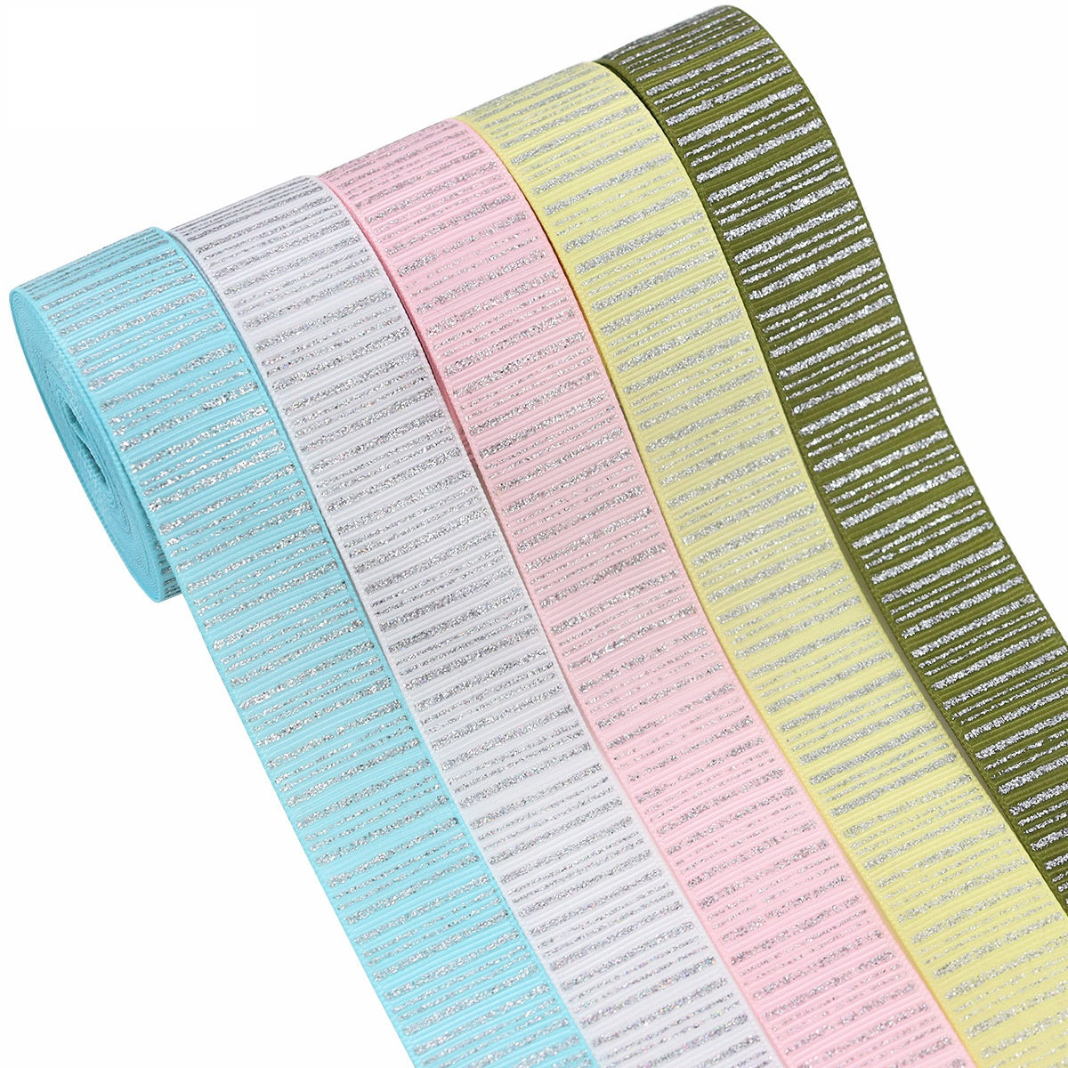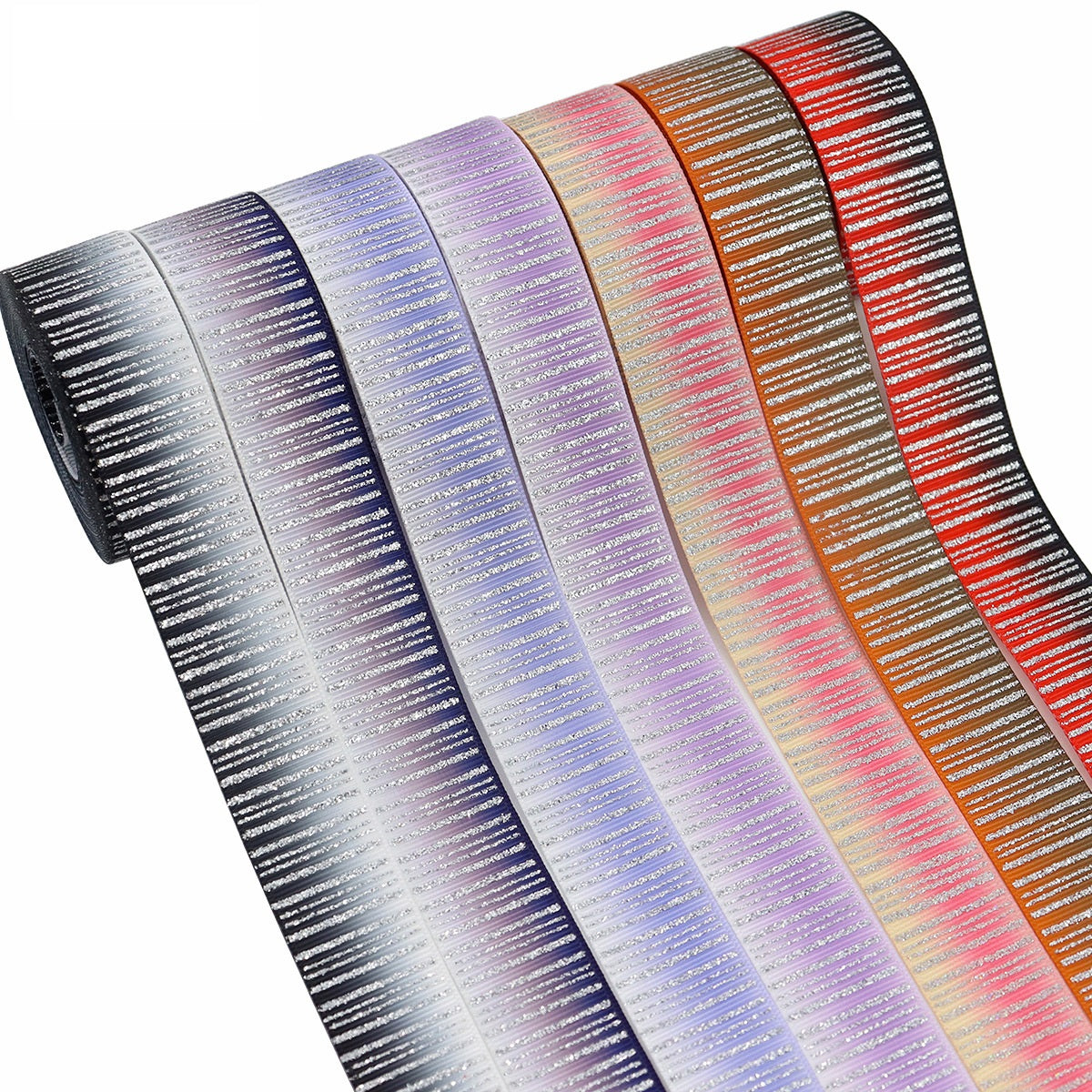 25mm Λαμπερή Κατακόρυφη Ριγέ Ασημένια Κορδέλα με Φύλλο 28 Χρώματα