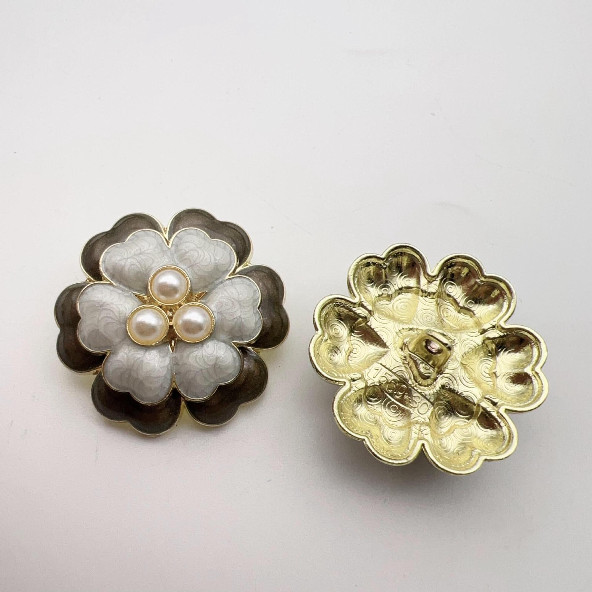 28mm Μαργαριτάρι Πεντάφυλλο Ανθός Βίντατζ Γαλλικά Μεταλλικά Κουμπιά με Πέταλο 48 Τεμάχια