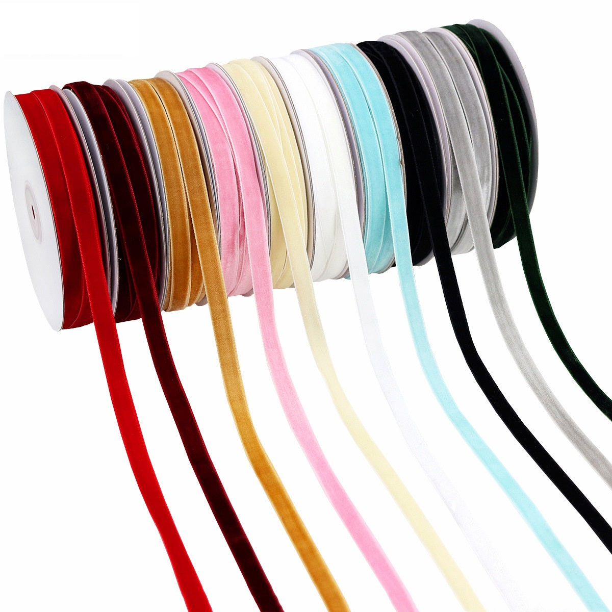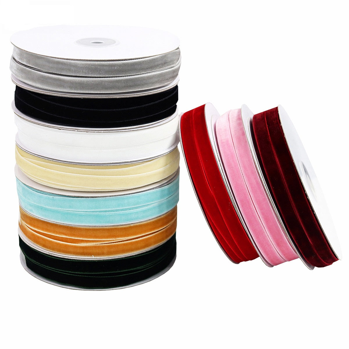 3/8" 10MM Πλάτος Μονόπλευρη Βελούδινη Κορδέλα - 50 Yards (5 Yards x 10 Χρώματα)