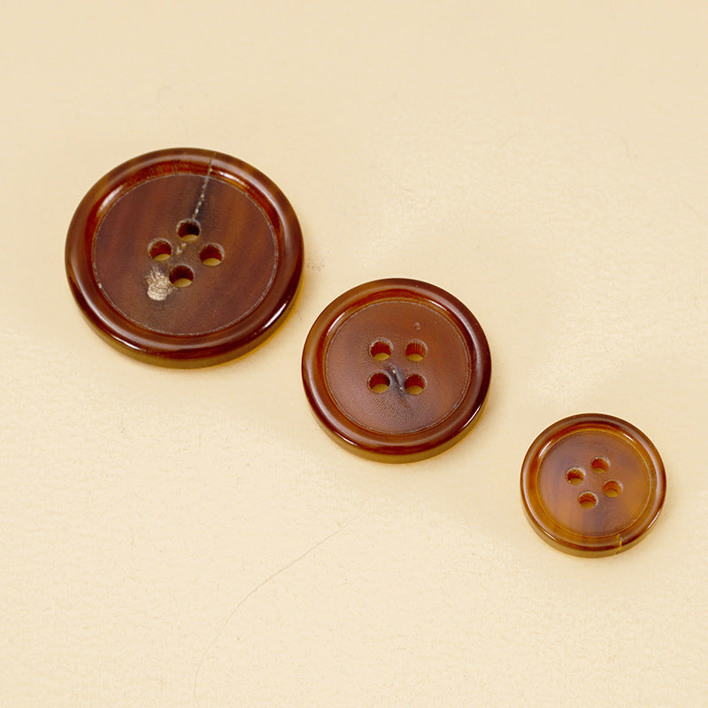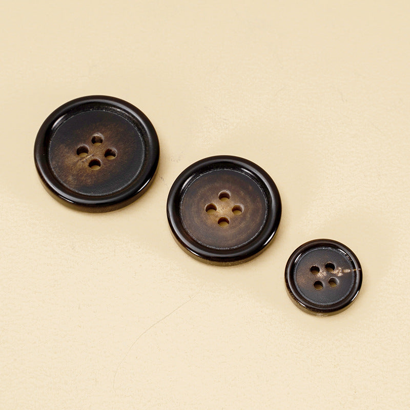 Κουμπιά κοστουμιού 40/44/48L από φυσικό κέρατο αγελάδας σε μαύρο και καφέ χρώμα με στρογγυλεμένη άκρη και τέσσερις τρύπες, 10 τεμάχια