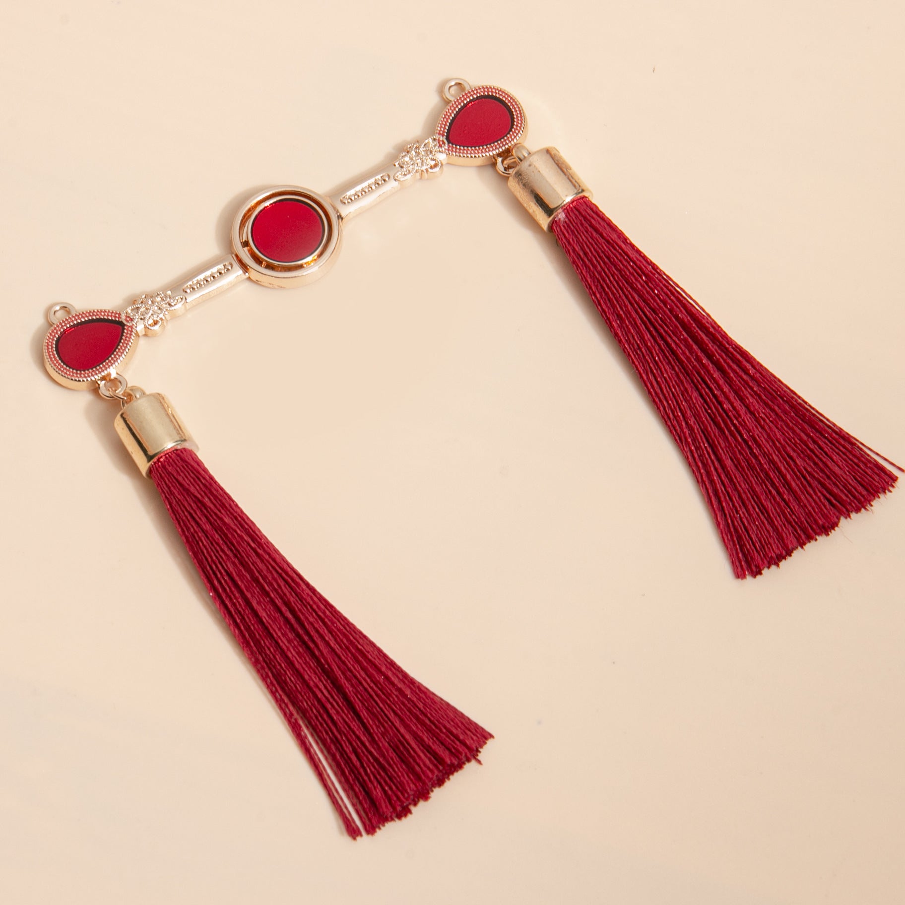 6.4cm Κινεζικού Στυλ Χρυσά Μεταλλικά Κουμπιά Βατράχου Hanfu με Κόκκινες Φούντες 10 τεμ