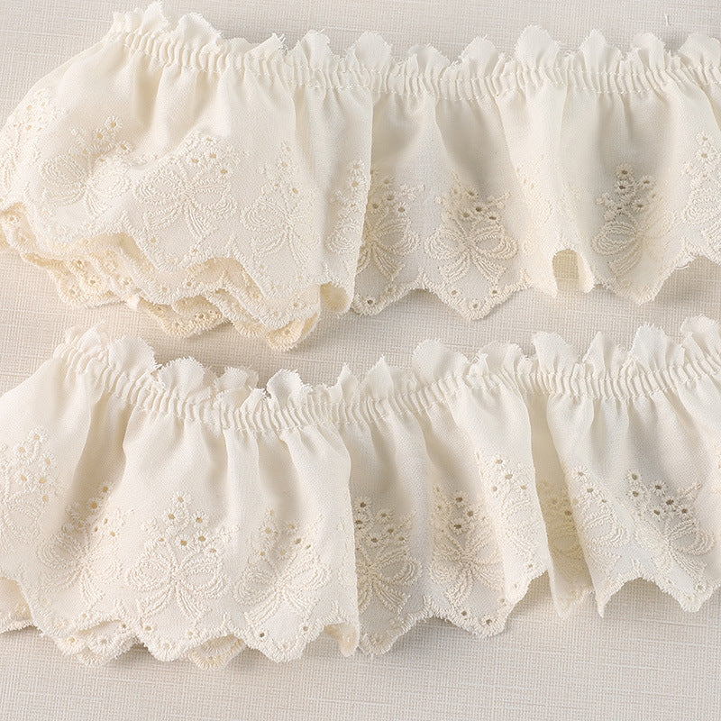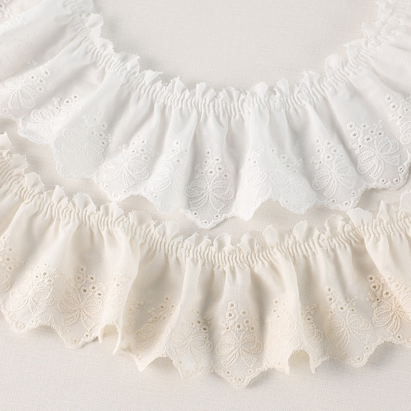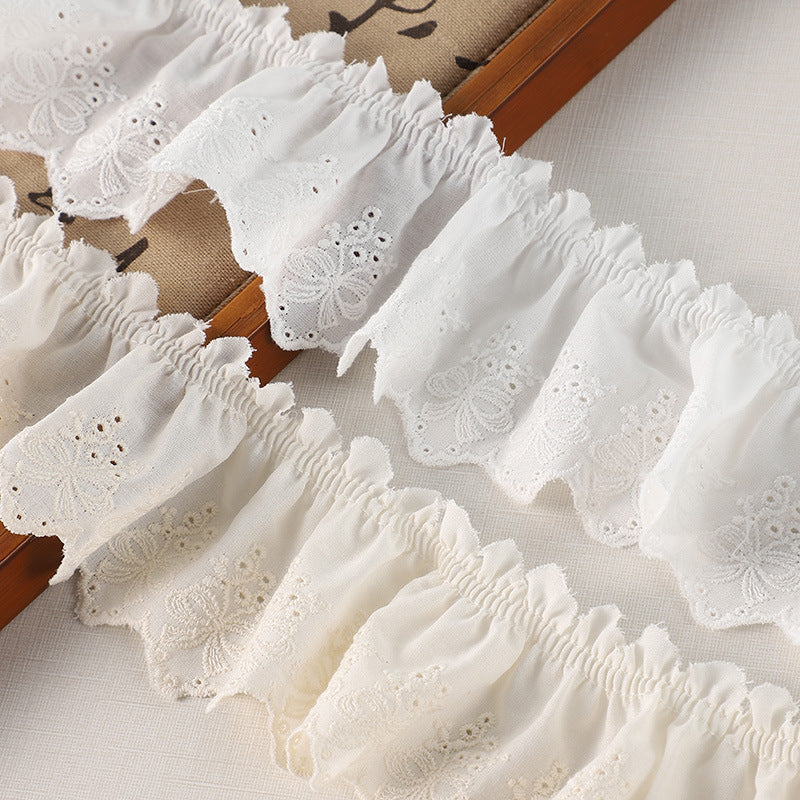 70mm βαμβακερή πλισέ δαντέλα πεταλούδα με κέντημα 5 γιάρδες