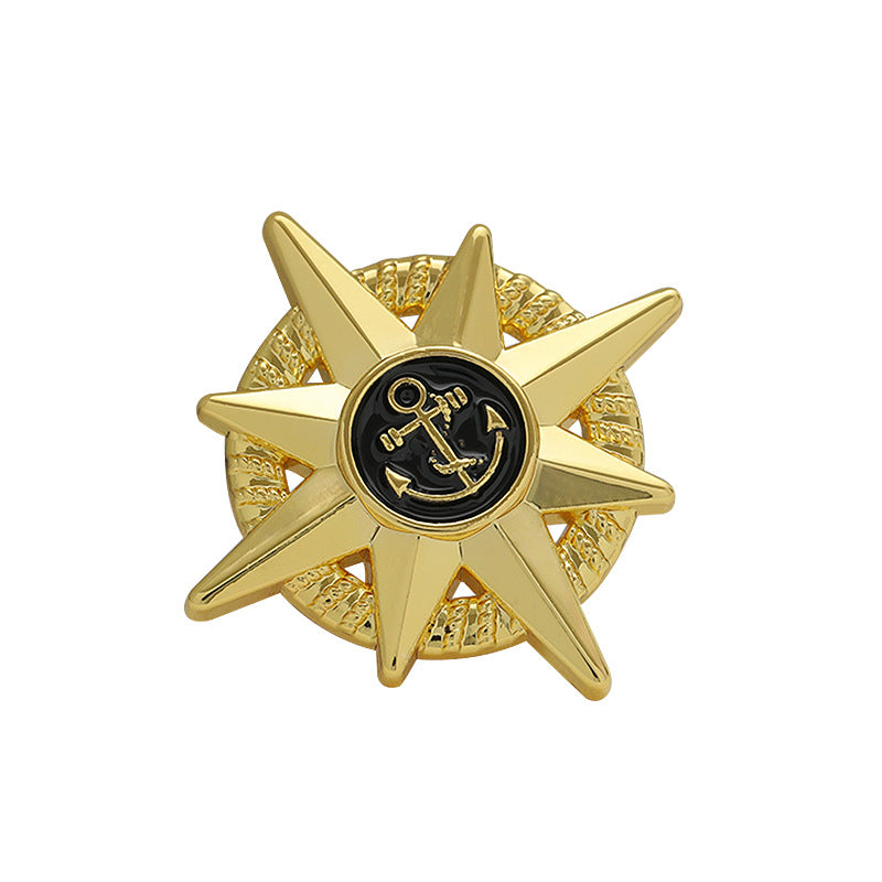 Αυτή η βρετανικού ρετρό στυλ μεταλλική καρφίτσα σε σχήμα οκταγωνικού αστεριού με εποξική άγκυρα είναι ένα πραγματικά μαγευτικό αξεσουάρ. Ο συνδυασμός των χρυσών και ασημένιων τόνων της δίνει μια κομψή και διαχρονική εμφάνιση. Η λεπτομέρεια της άγκυρας προσθέτει μια ναυτική νότα, προκαλώντας αίσθηση περιπέτειας και νοσταλγίας.