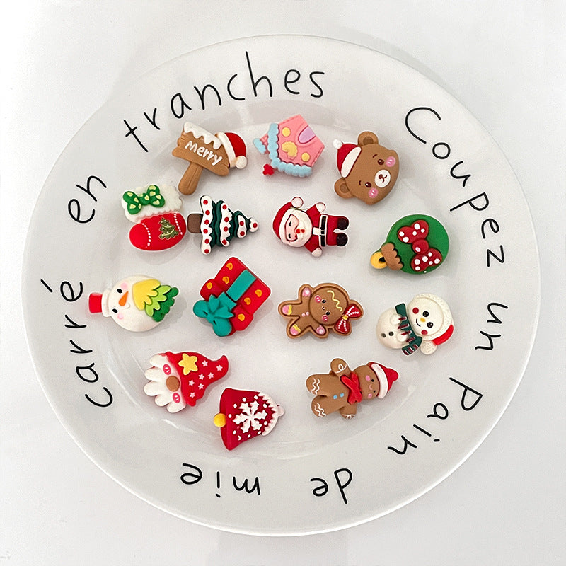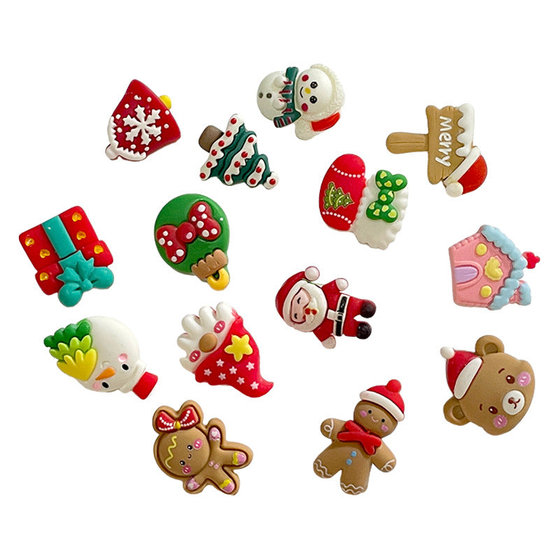 Σετ κουμπιών από ρητίνη με θέμα τα Χριστούγεννα με μεταλλικά στελέχη (14 τεμάχια)
