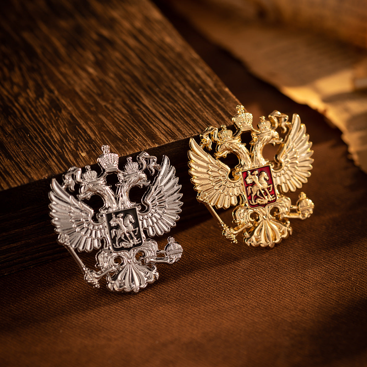 Προσθέστε μια πινελιά δημιουργικότητας και ρετρό κομψότητας στην γκαρνταρόμπα σας με αυτήν την καρφίτσα ιππότη με διπλό αετό.