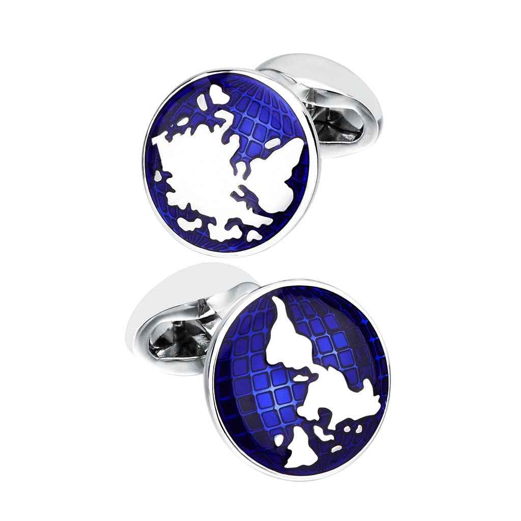 Μανικετόκουμπα με Παγκόσμιο Χάρτη σε Βαθύ Μπλε – Κομψά Αξεσουάρ για Ανδρικά Πουκάμισα