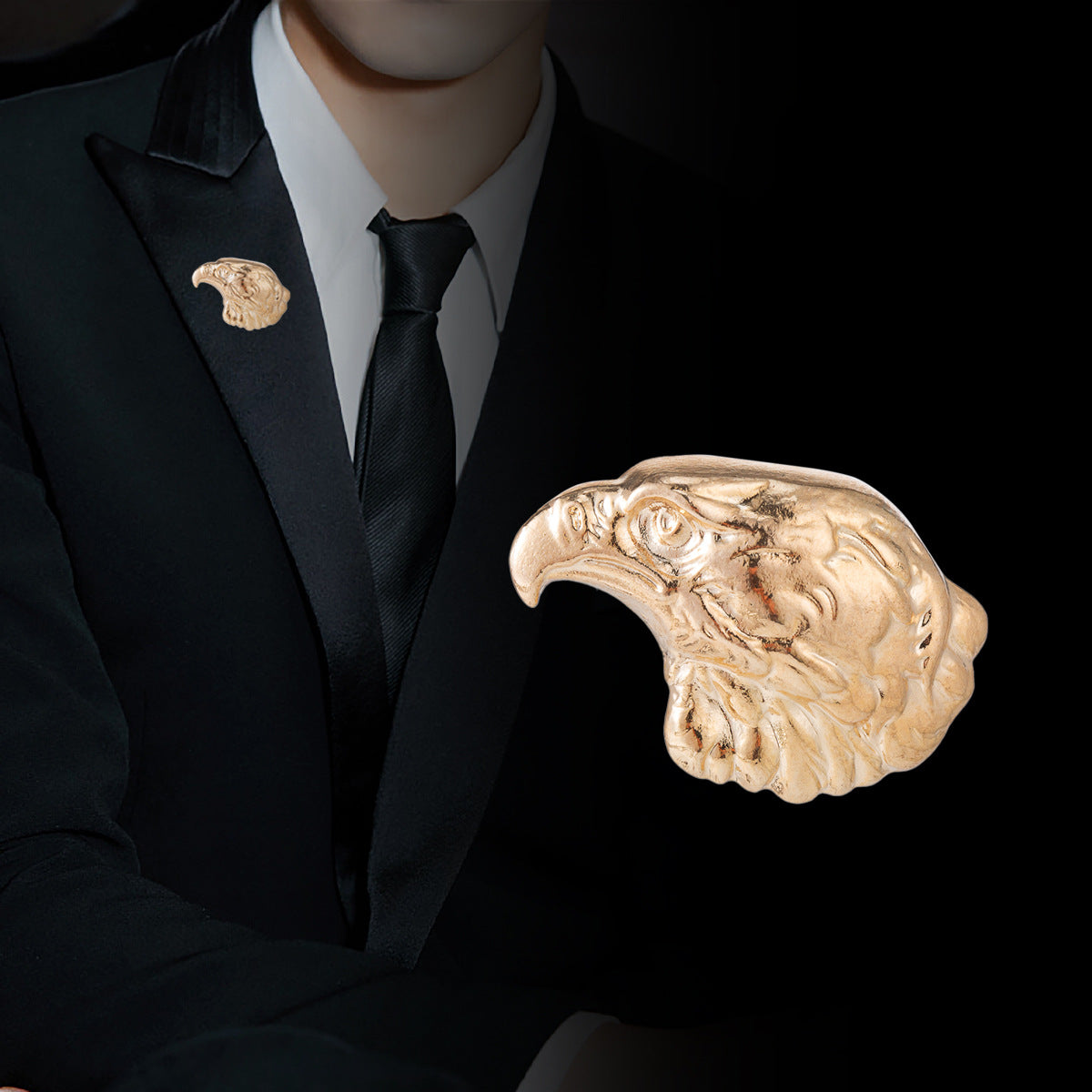 Η καρφίτσα απεικονίζει ρεαλιστικά το κεφάλι ενός αετού, με κοφτερά χαρακτηριστικά και επιβλητική παρουσία. Μπορεί να προσαρτηθεί εύκολα στο πέτο ενός κοστουμιού, στο σακάκι ή στο καπέλο, προσθέτοντας μια πινελιά κομψότητας και αρρενωπότητας σε κάθε εμφάνιση.
