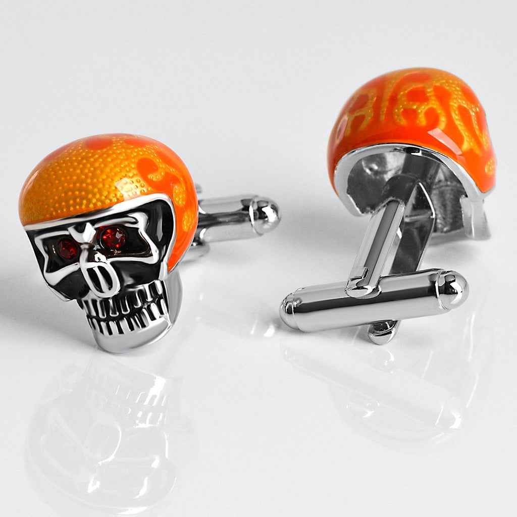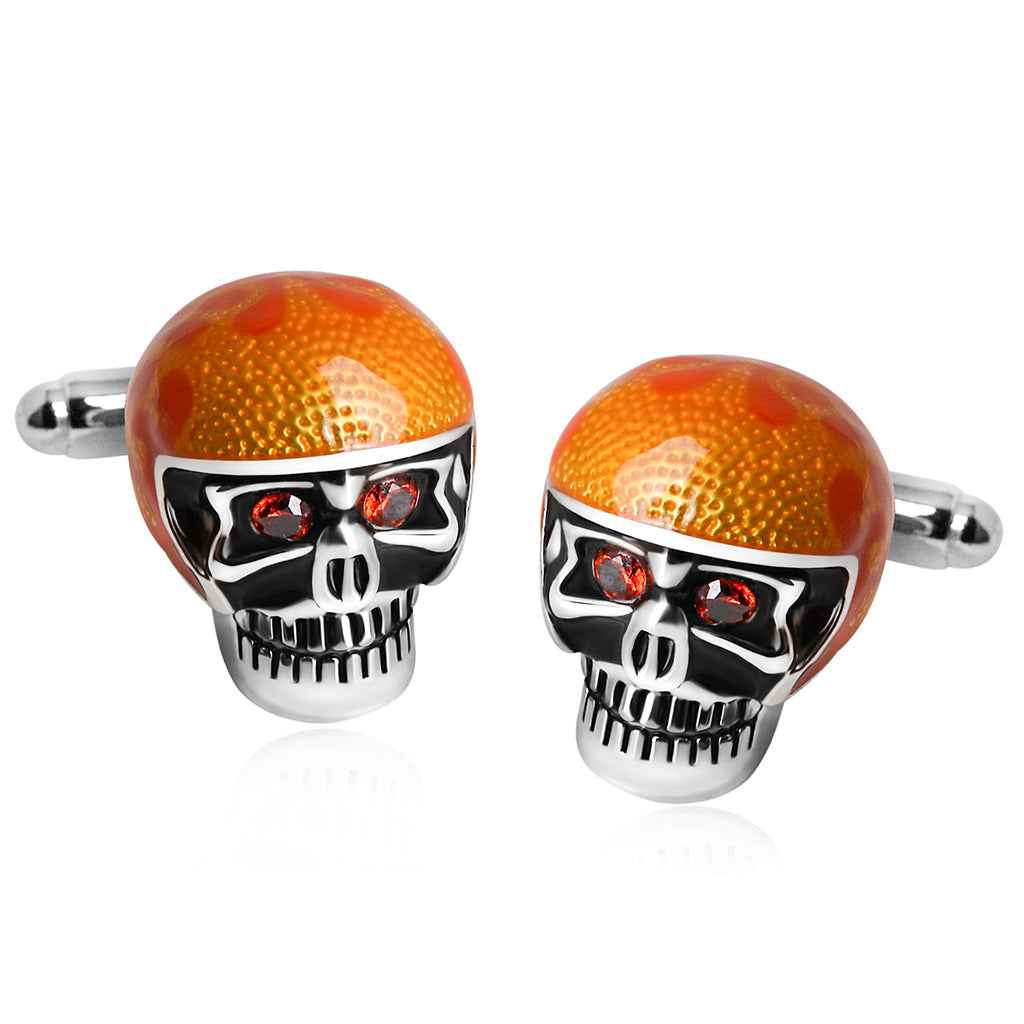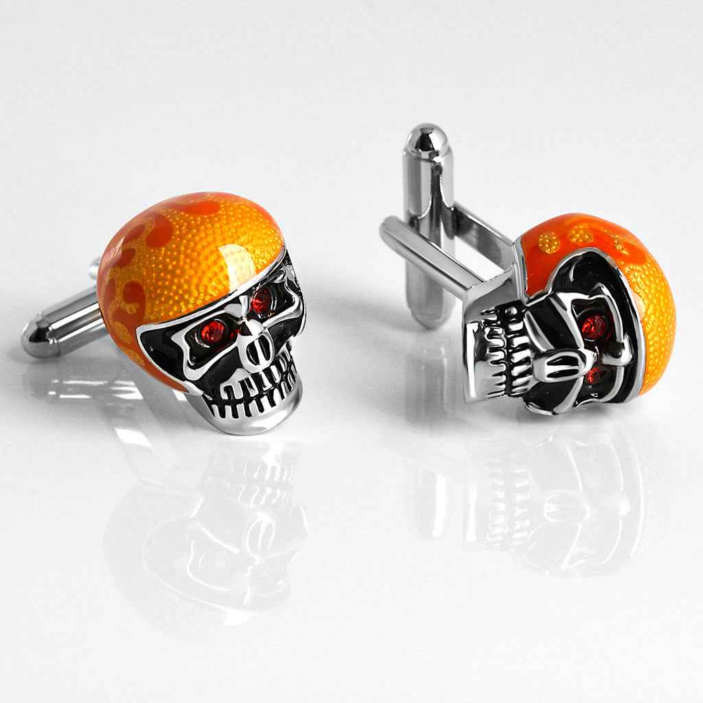 Γυαλιστερά πορτοκαλί μανικετόκουμπα με σταγόνες κρανίου για τολμηρούς καλλιτεχνικούς άνδρες
